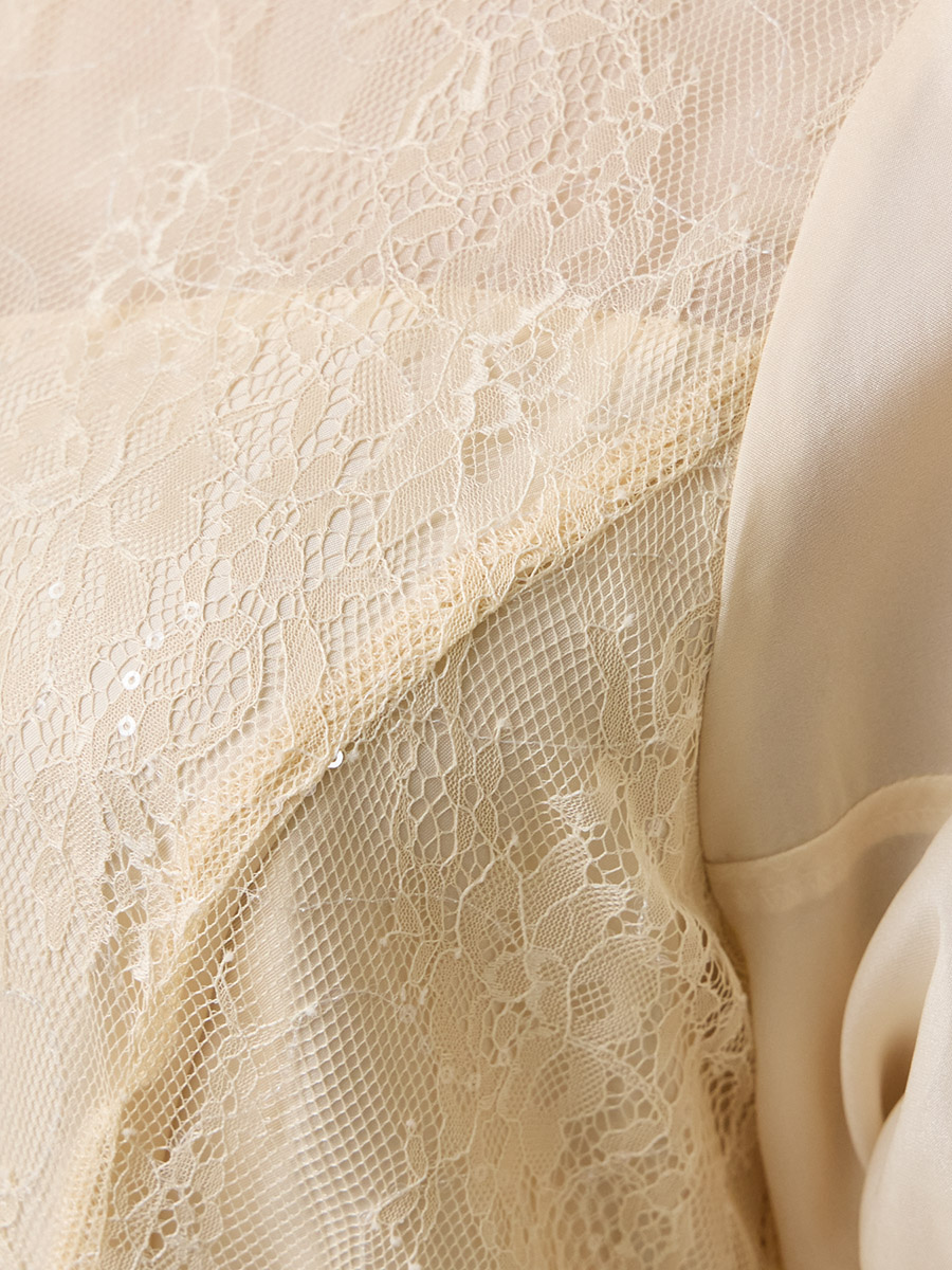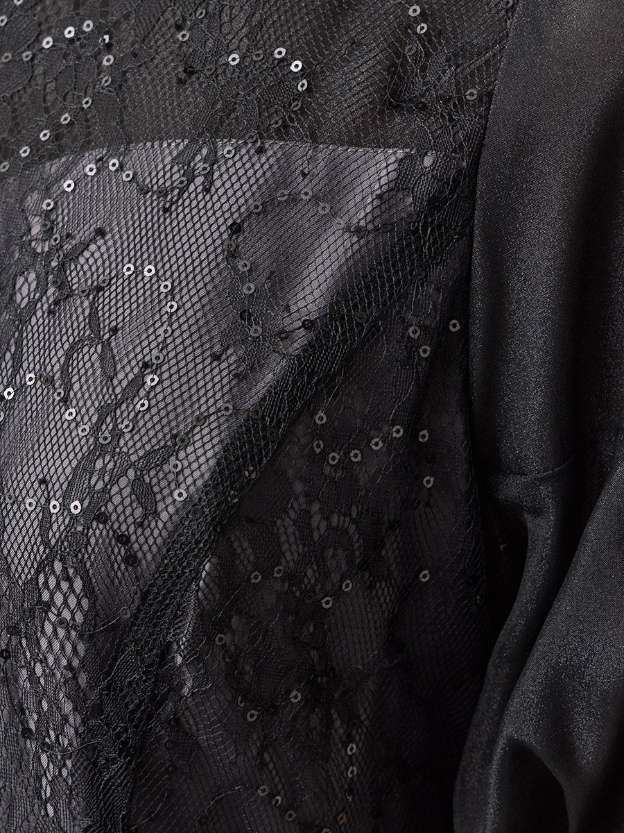 ・ラッセルレースにスパンコールを刺繍した華やかな素材が繊細なきらめきを演出