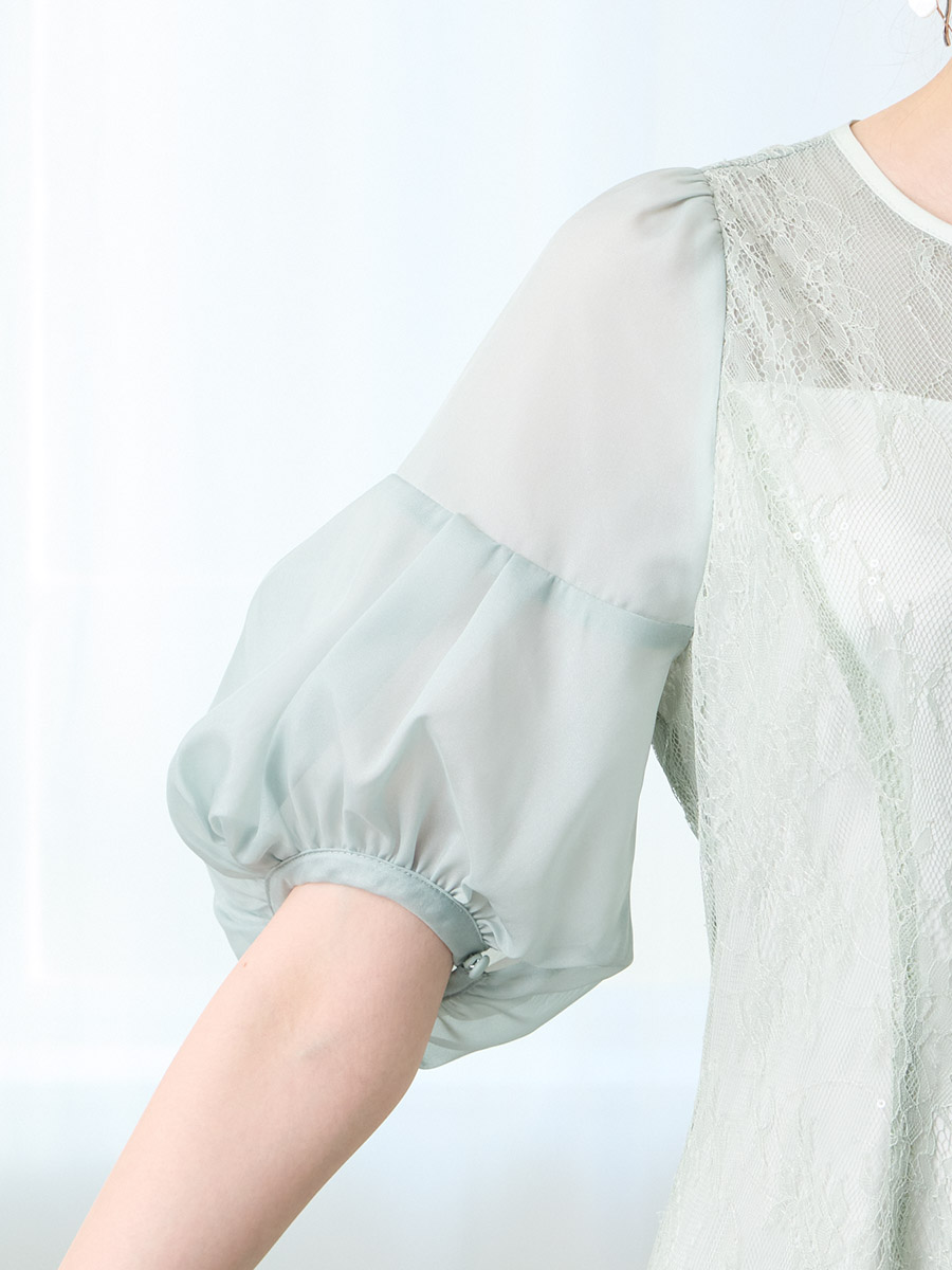 ・袖は2枚仕立てで、透けすぎず上品なボリューム感に