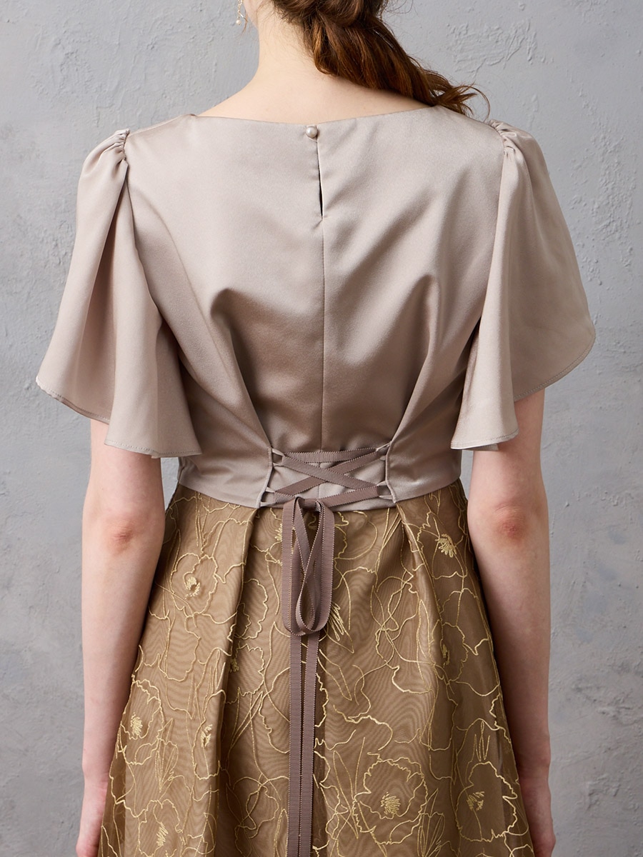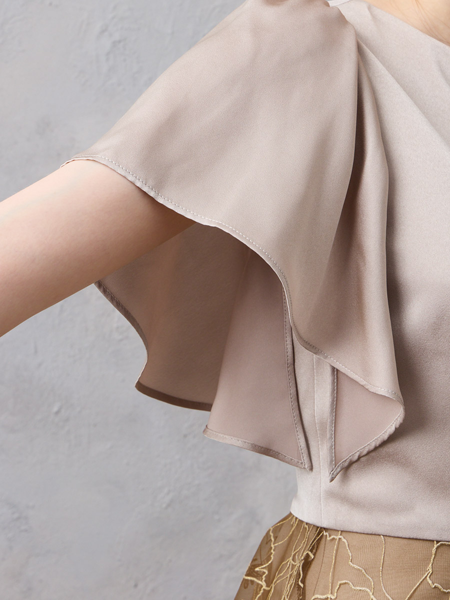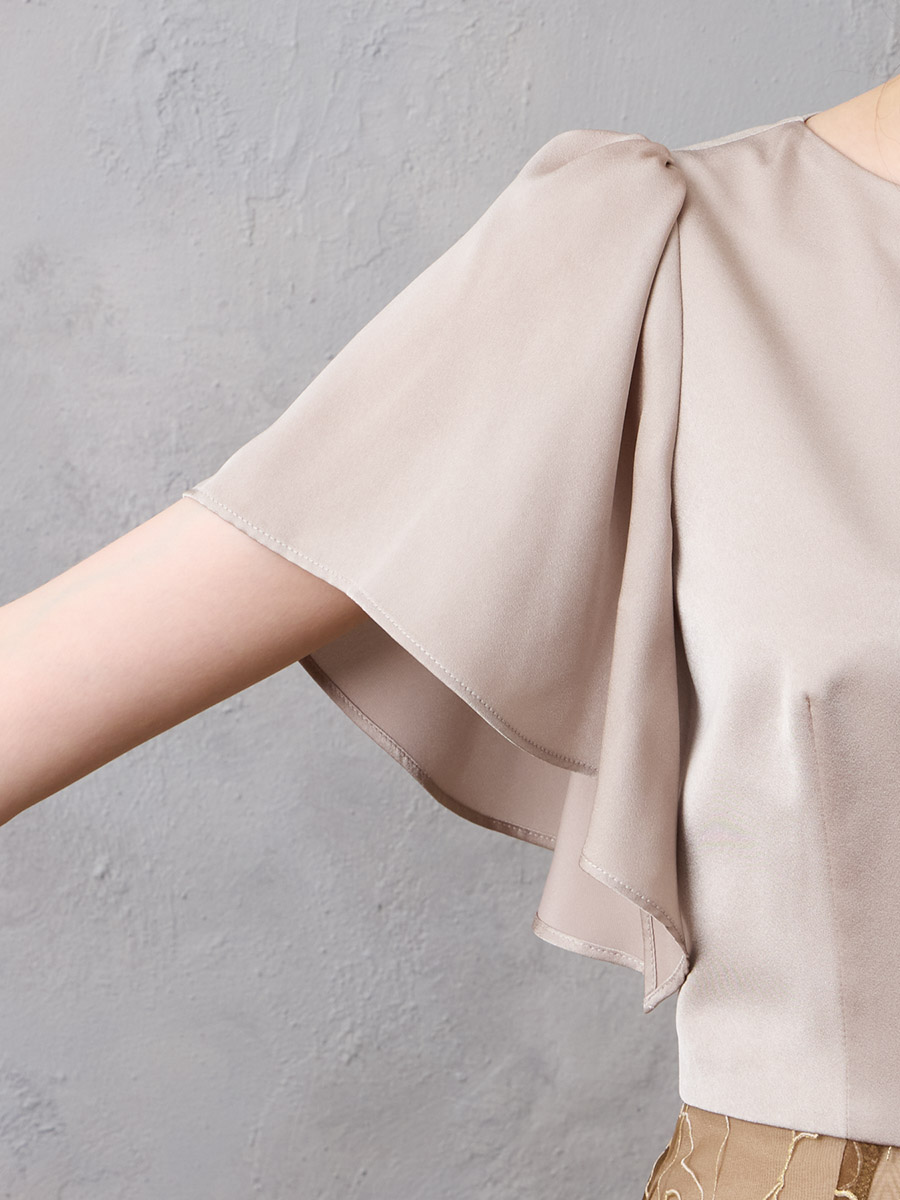 袖は自然に広がるフレアスリーブで女性らしさをプラス。