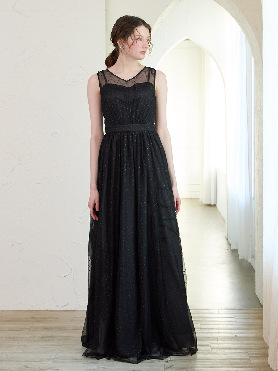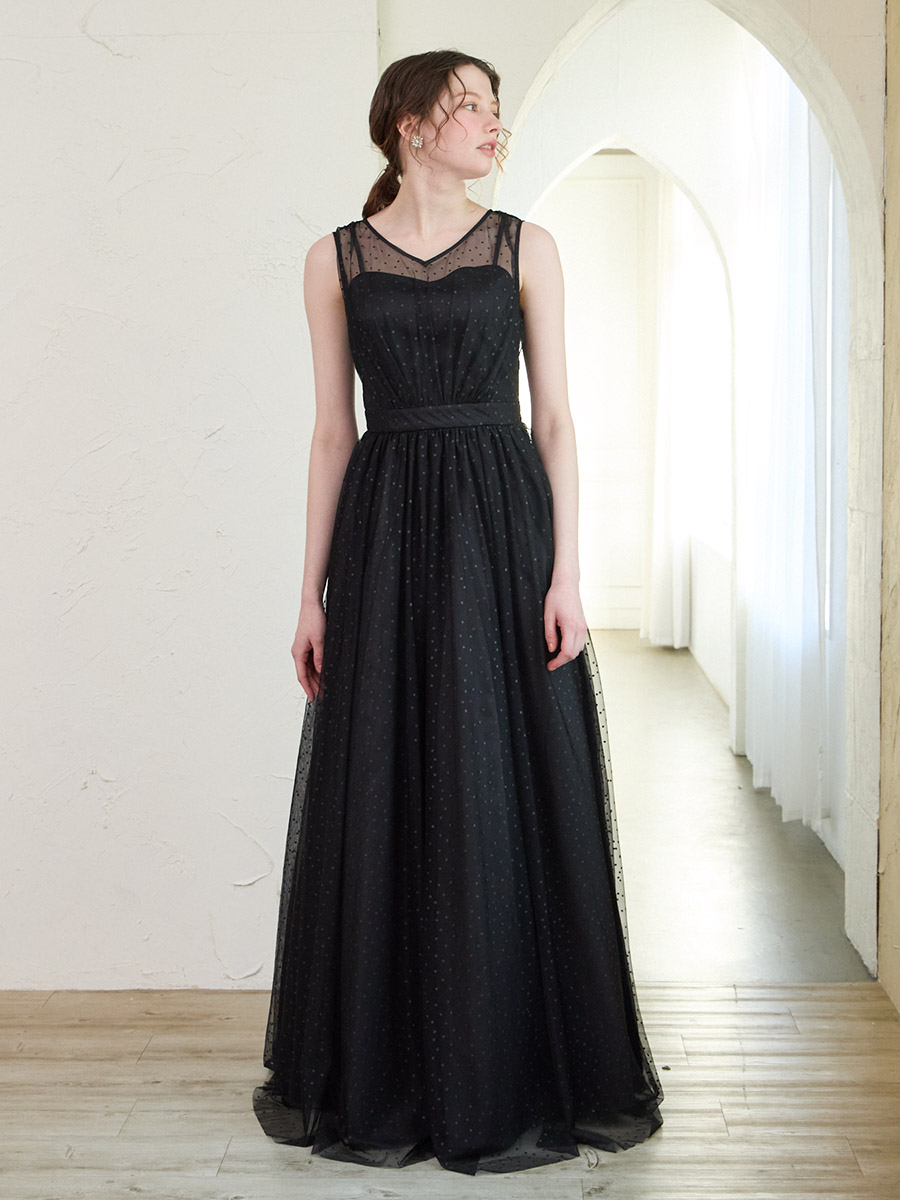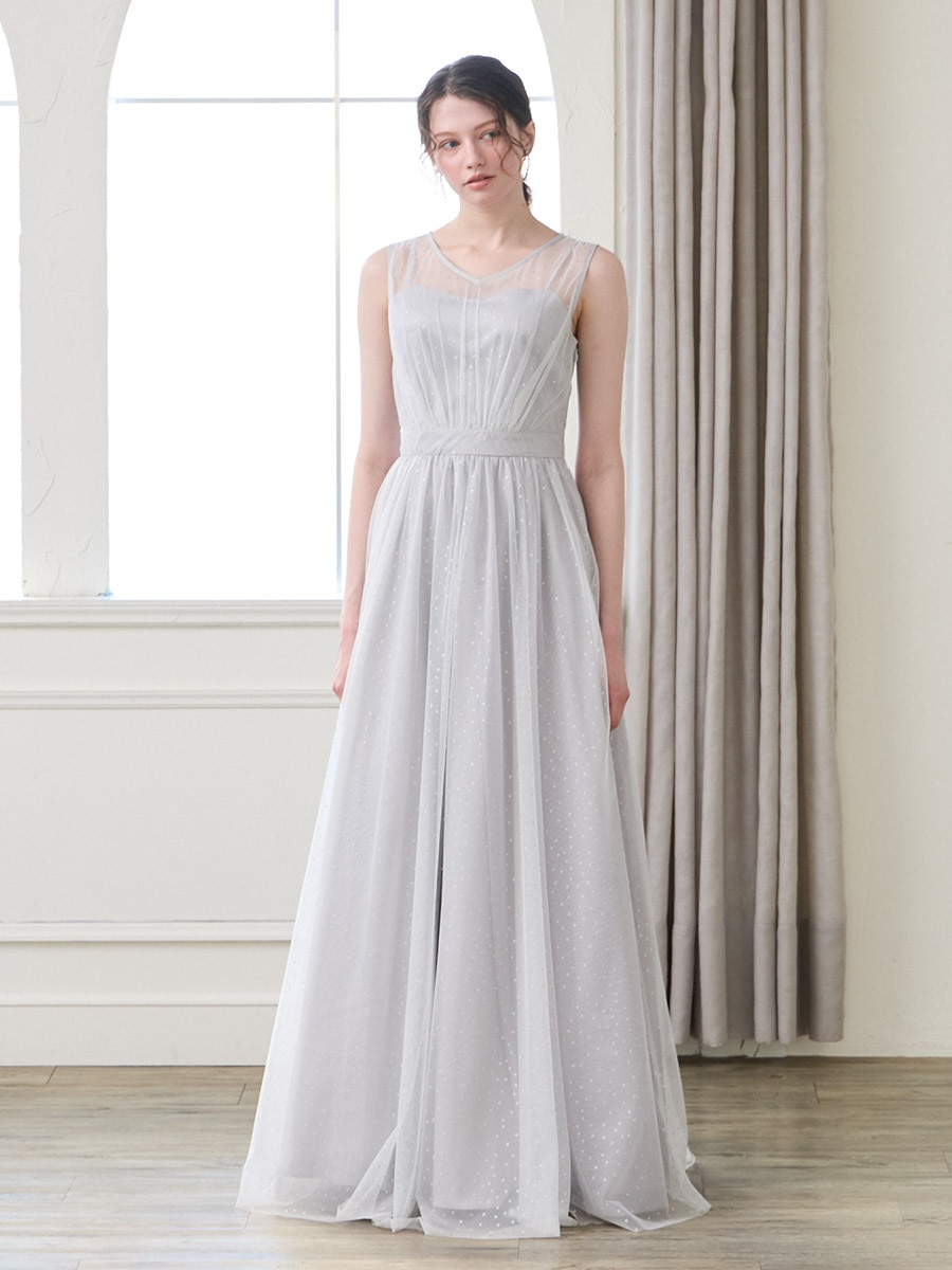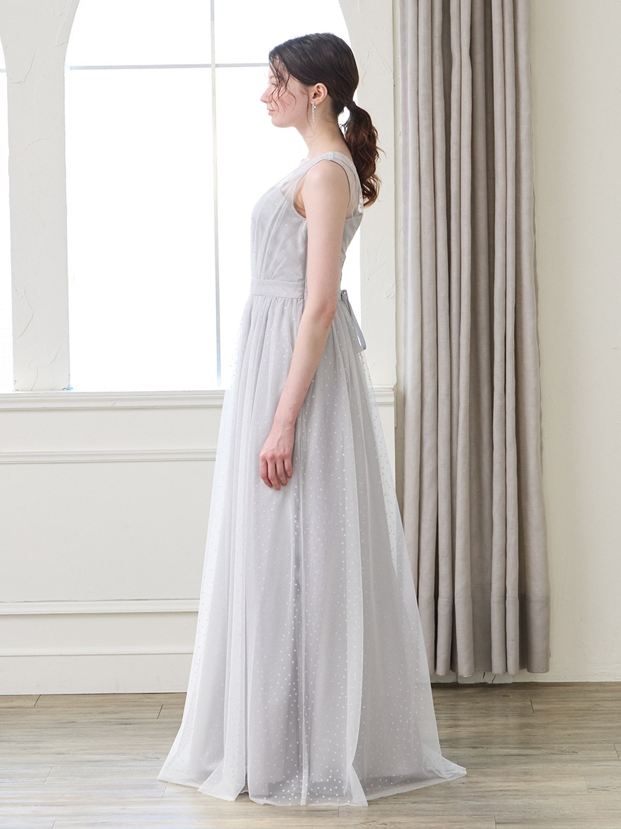 グリッタードットチュールロングドレス