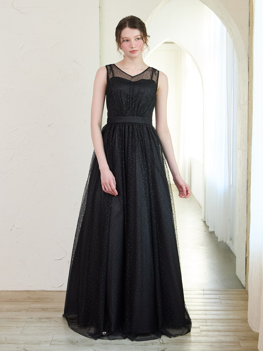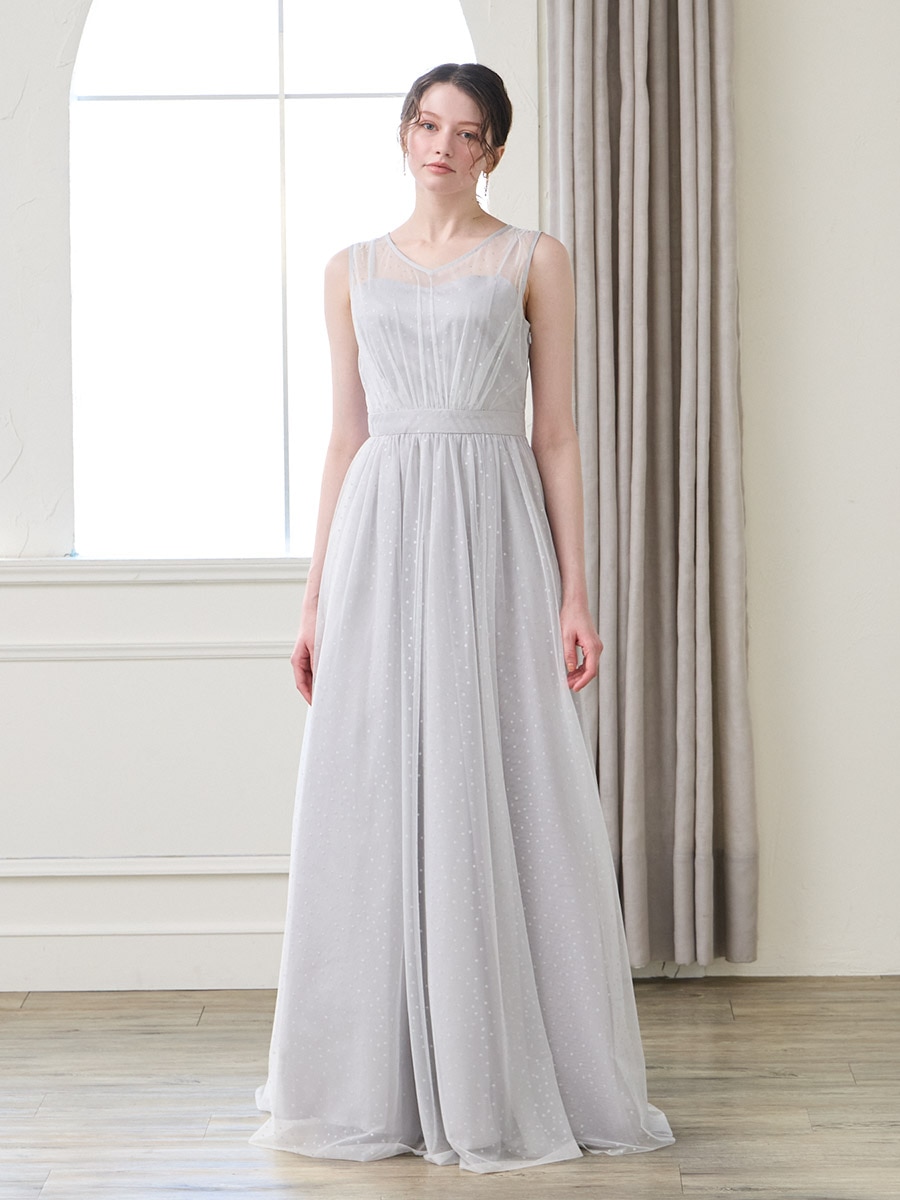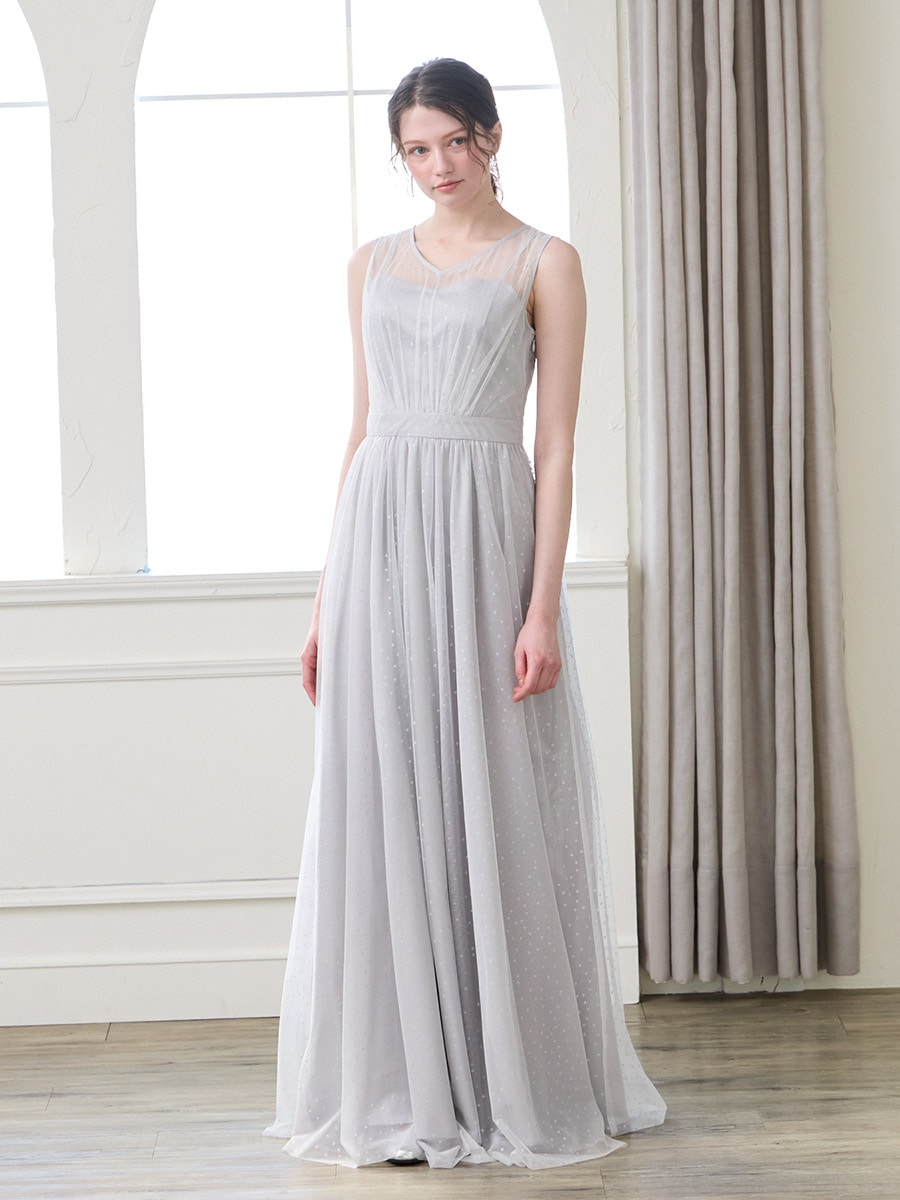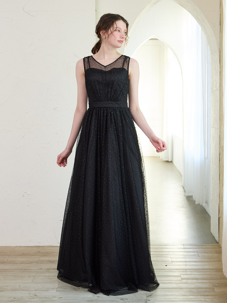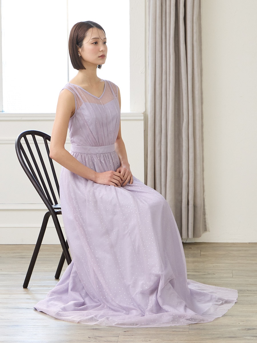 グリッタードットチュールロングドレス