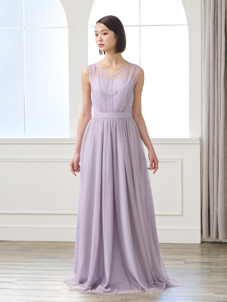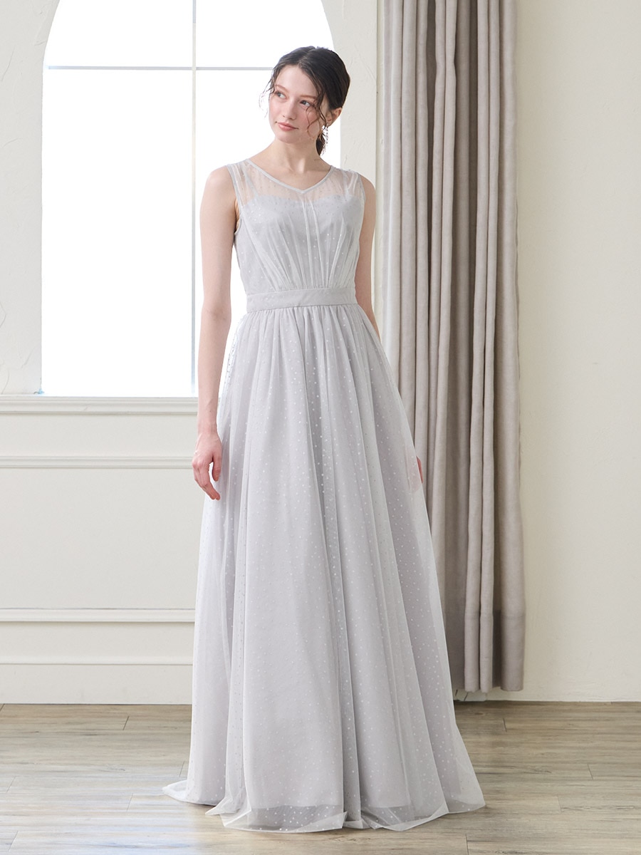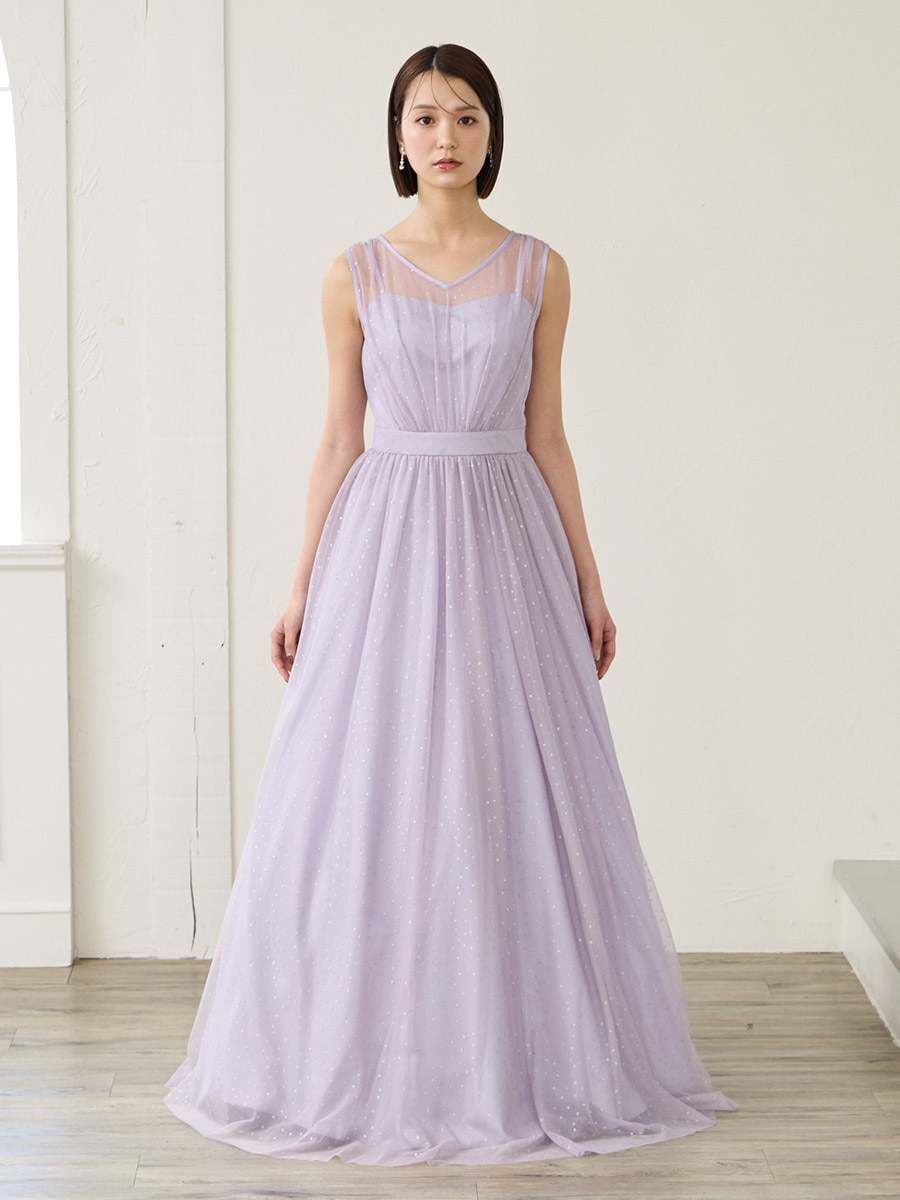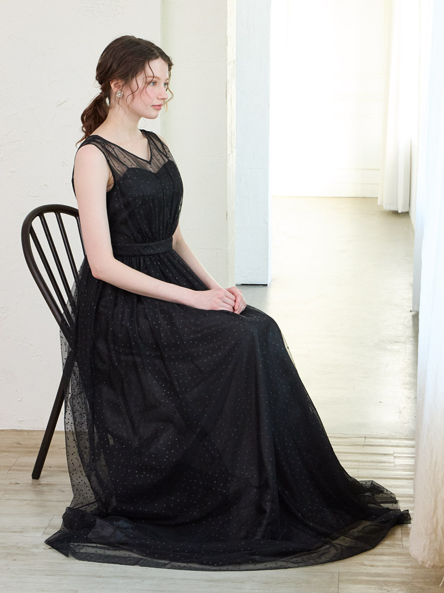 グリッタードットチュールロングドレス
