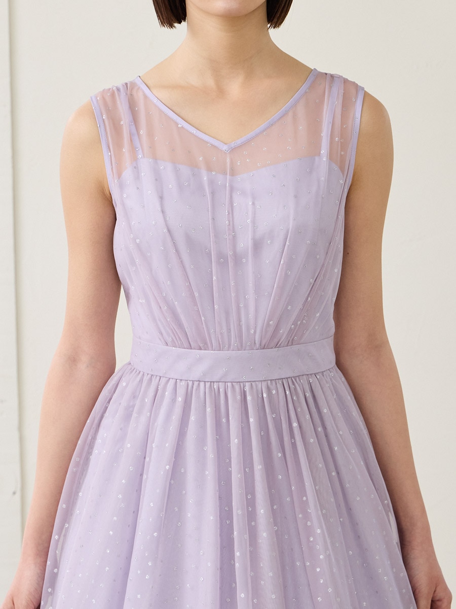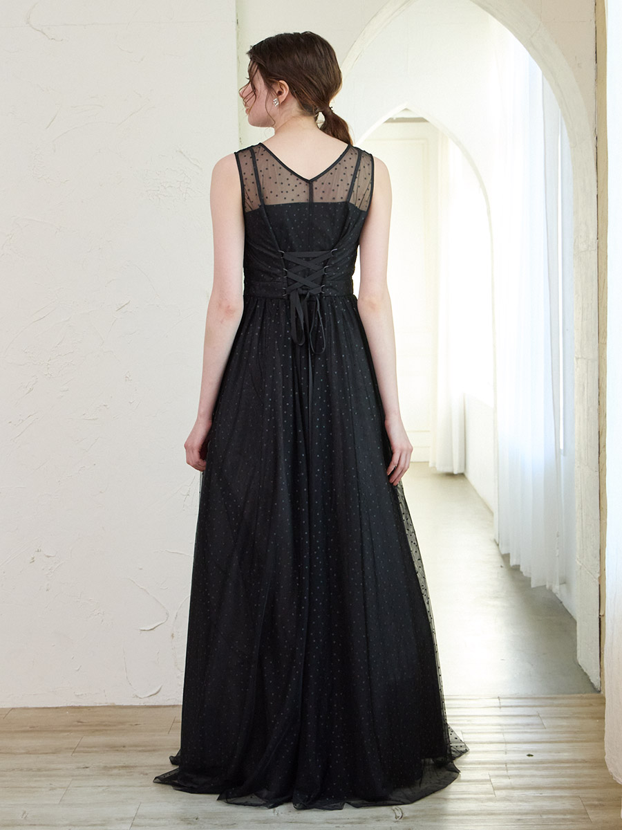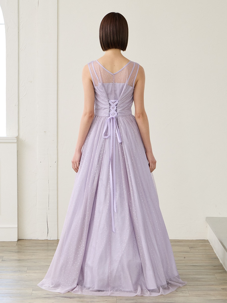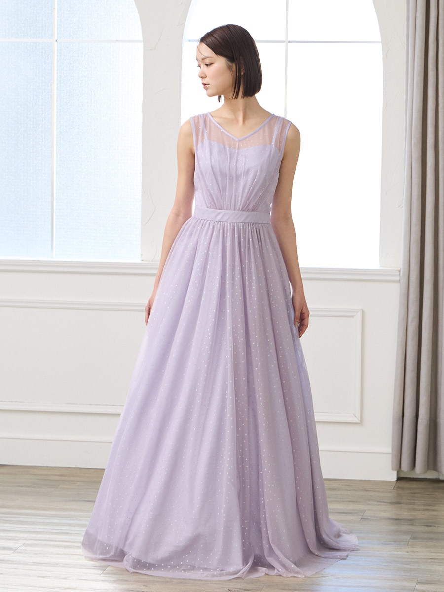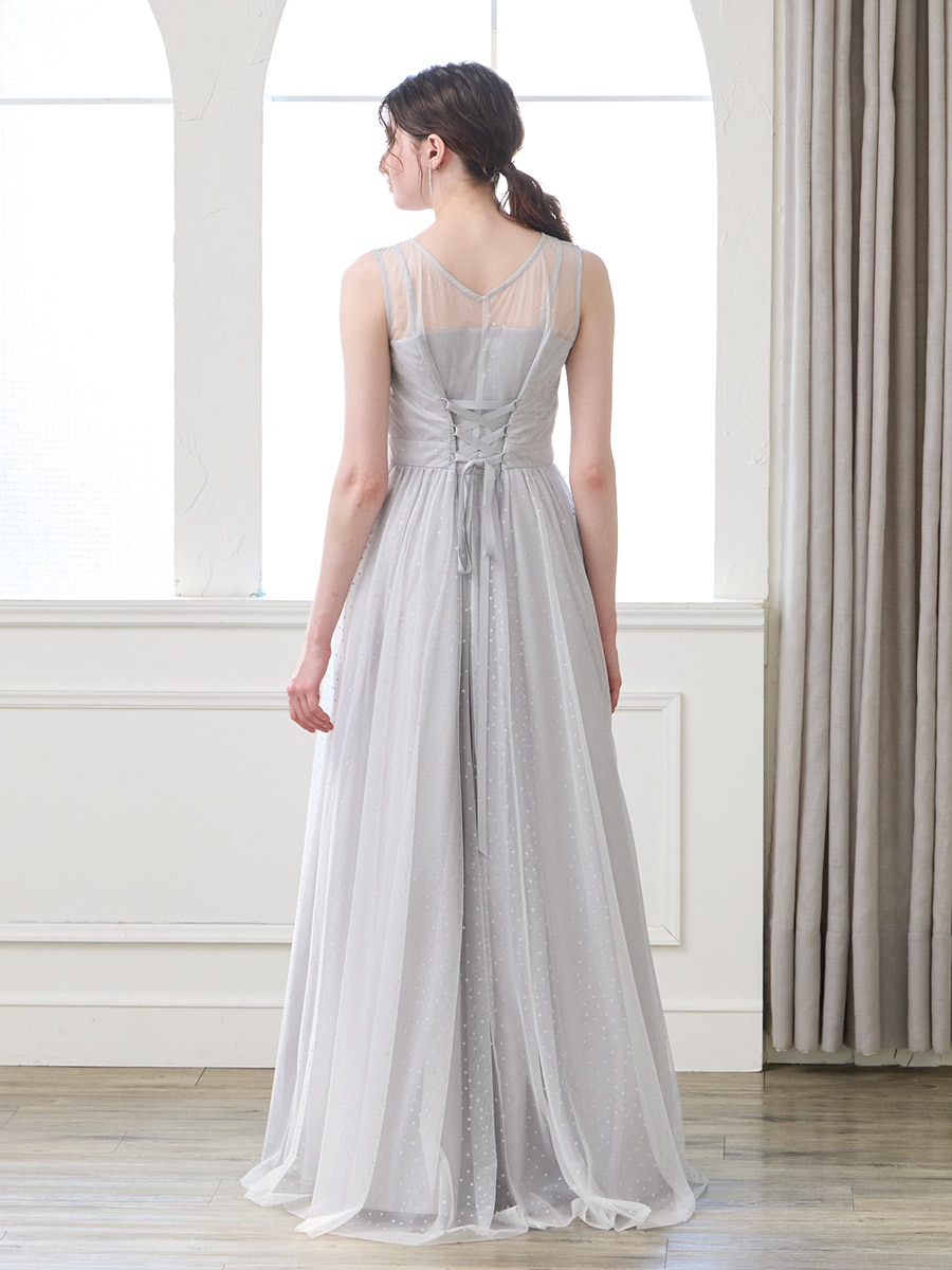グリッタードットチュールロングドレス