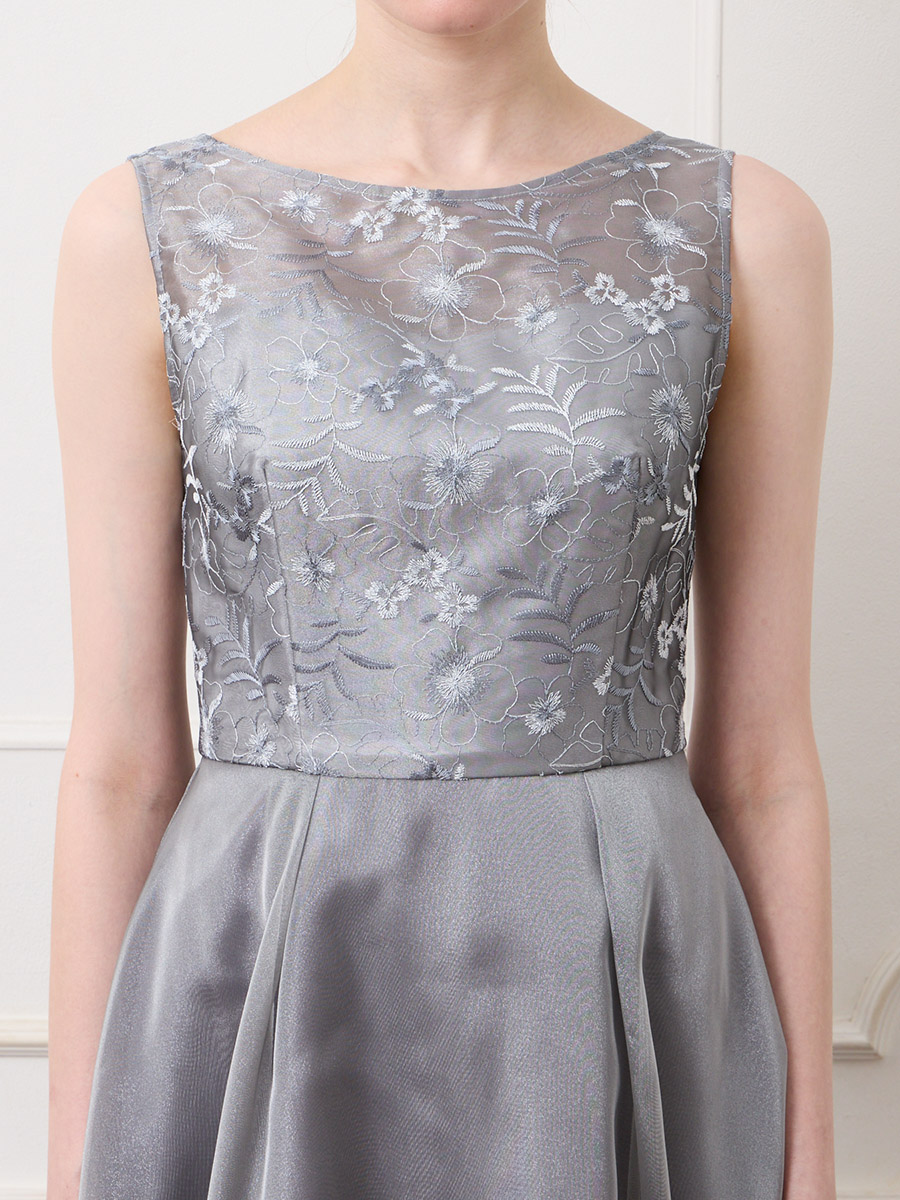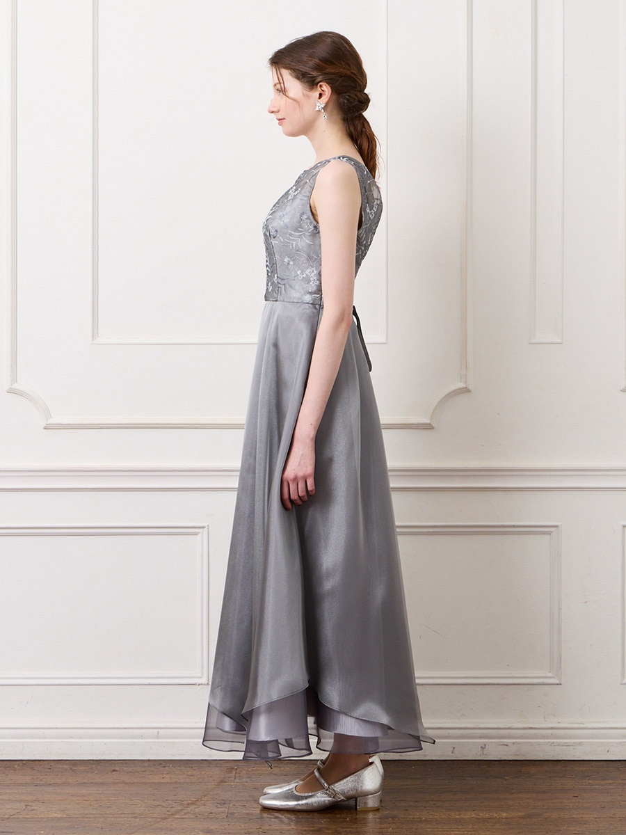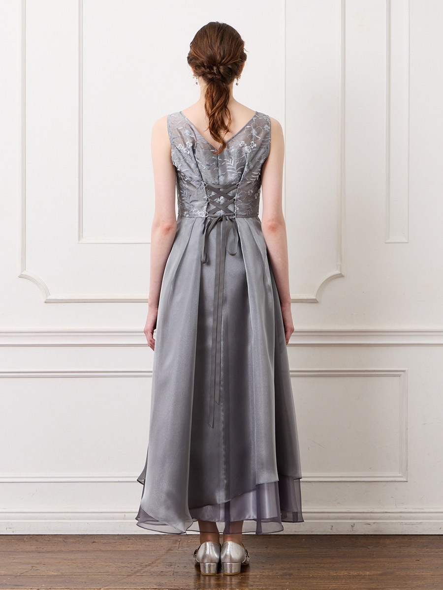 ラメ刺繍×アシンメトリーヘムアンクル丈ドレス