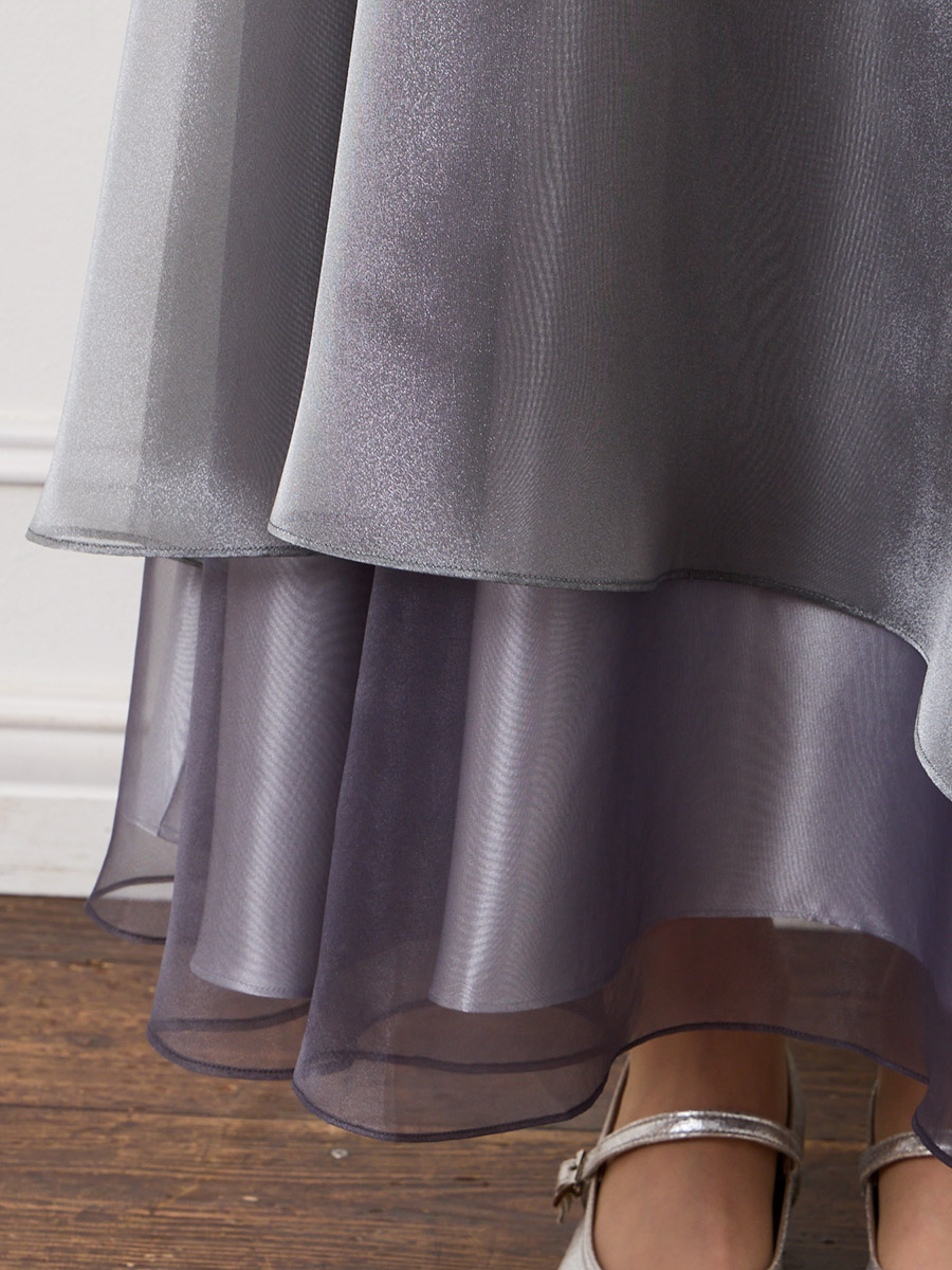 ・スカートは2種類のオーガンジーを重ね、動きのあるデザインに