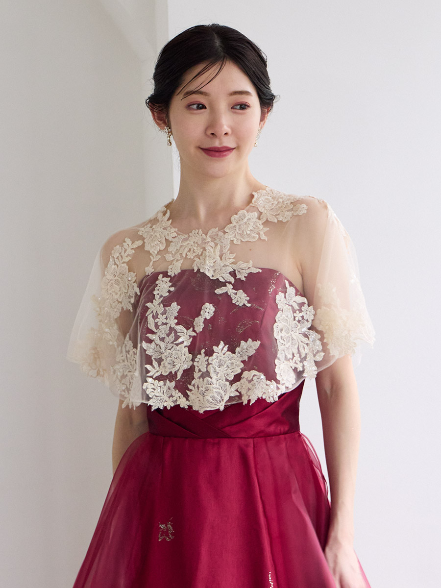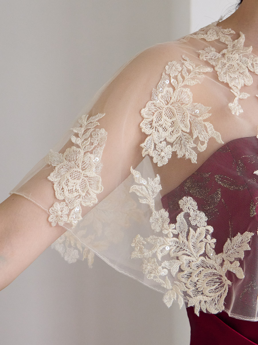 レーススパンコール刺繍ケープ