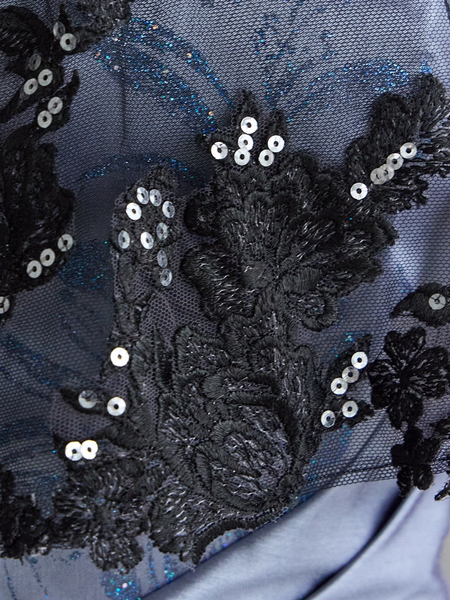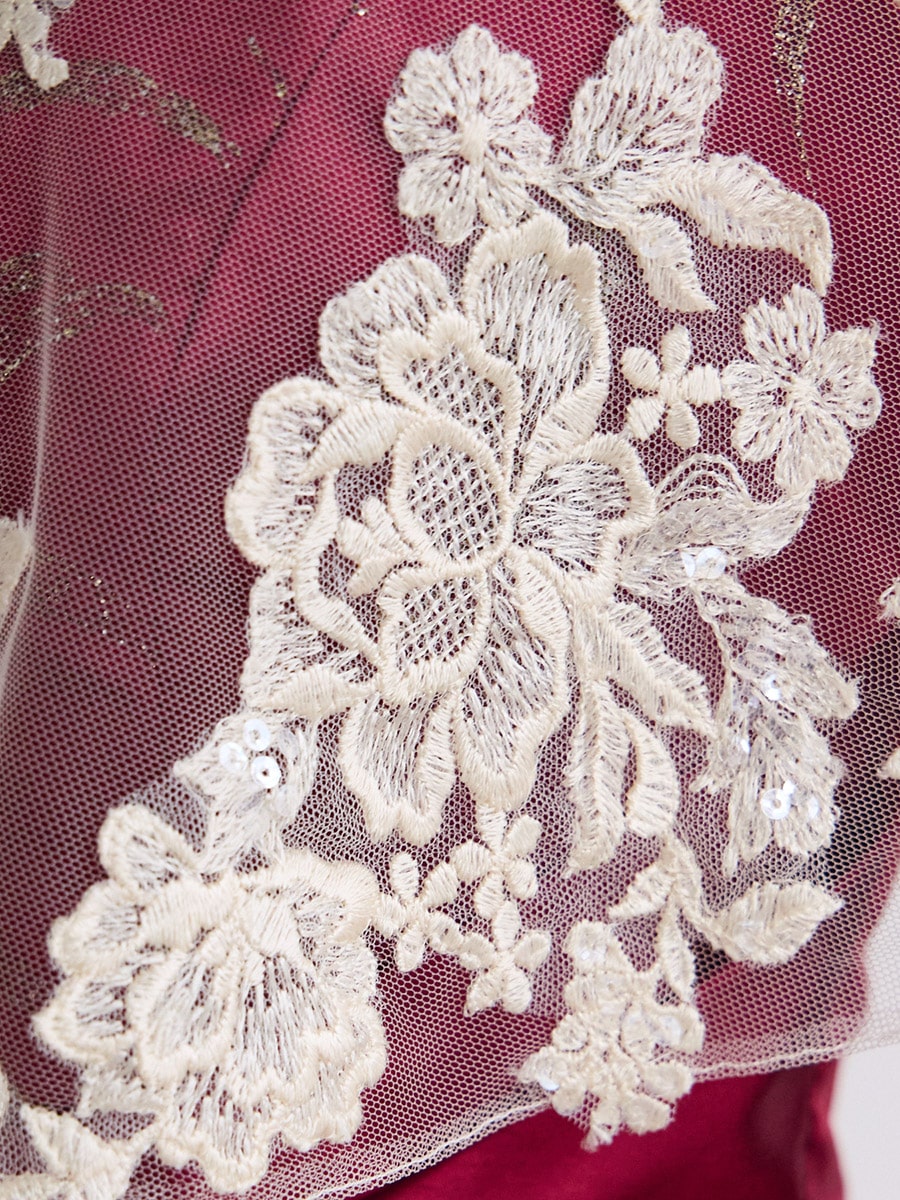 ・オリジナルで染めたレースとスパンコール刺繍を施しています