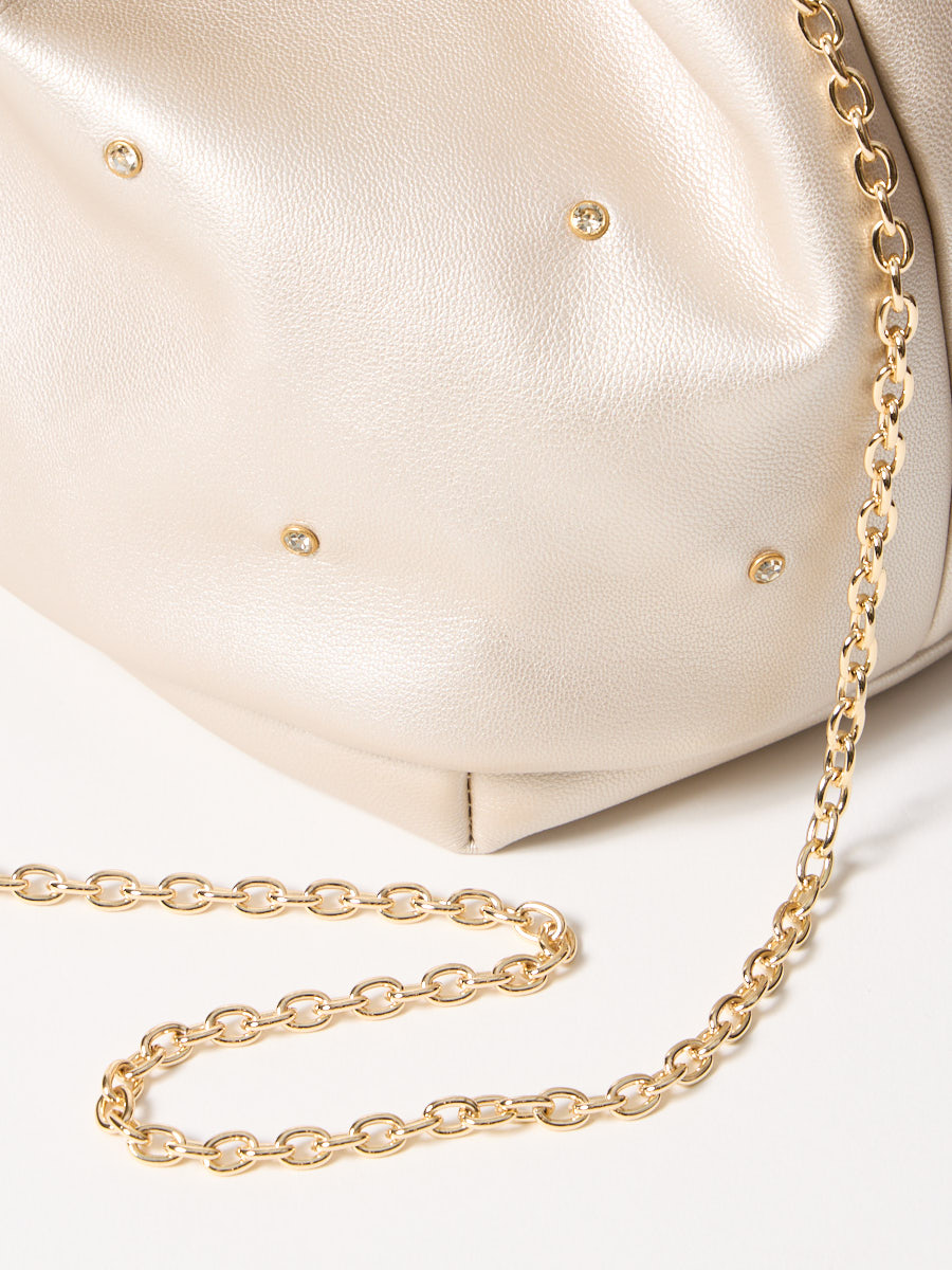 チェーンは取り外し可能ですので、お持ちのショルダーストラップに付け替えてデイリー使用も可能に。