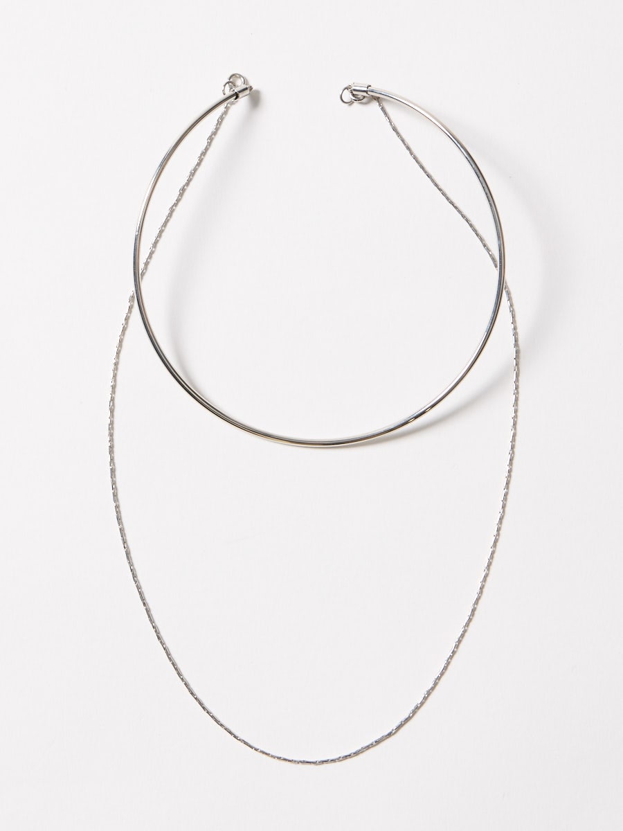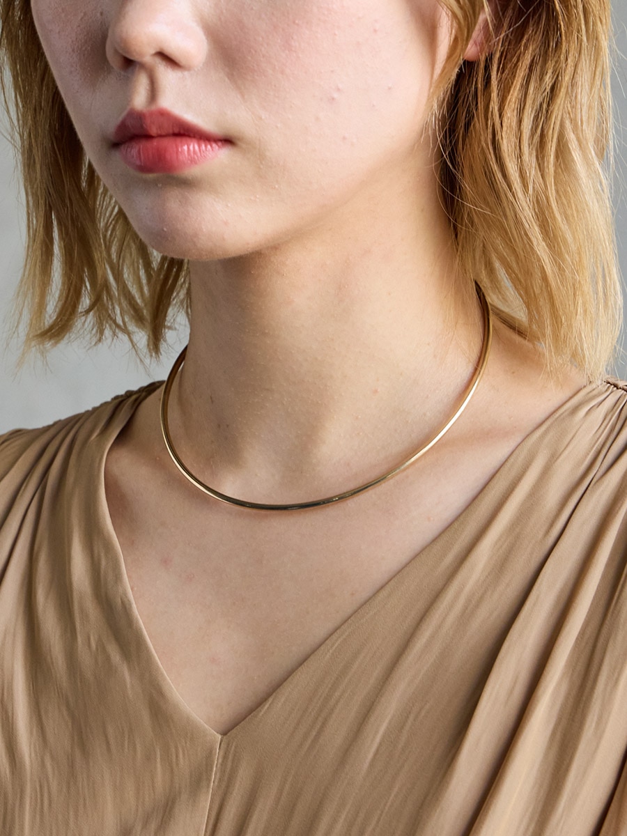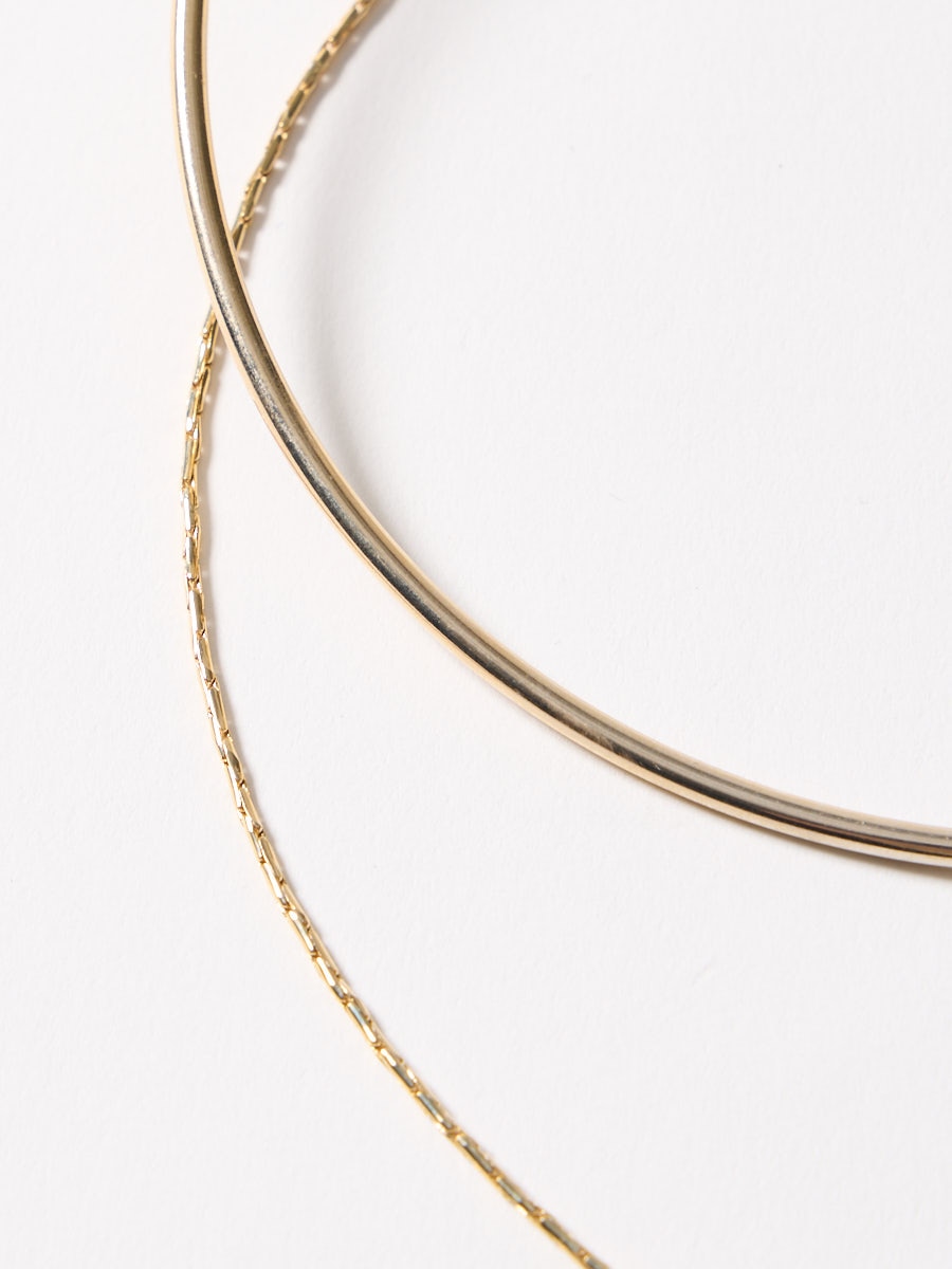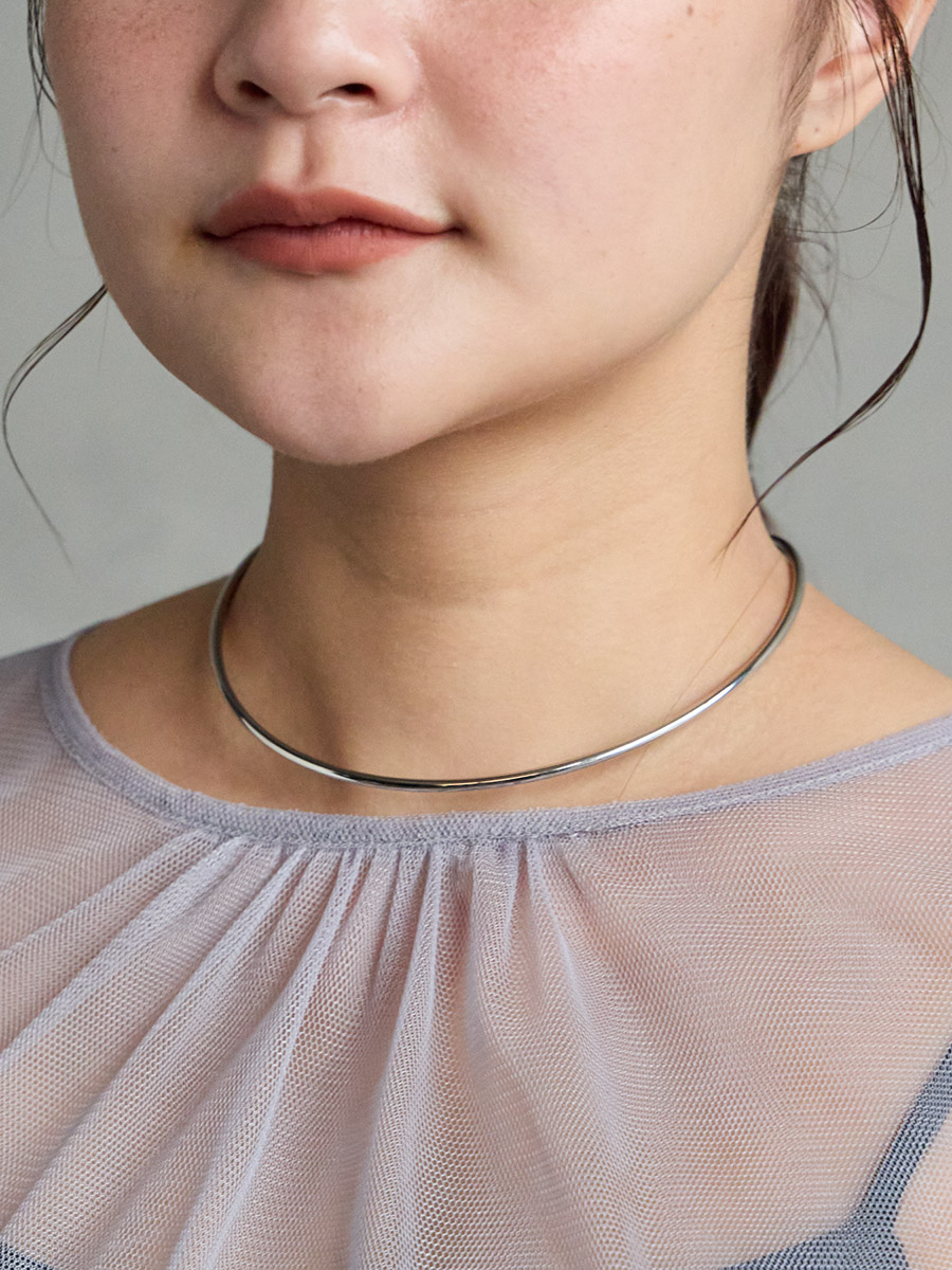 シンプルなパイプネックと華奢なチェーンを組み合わせたネックレス。