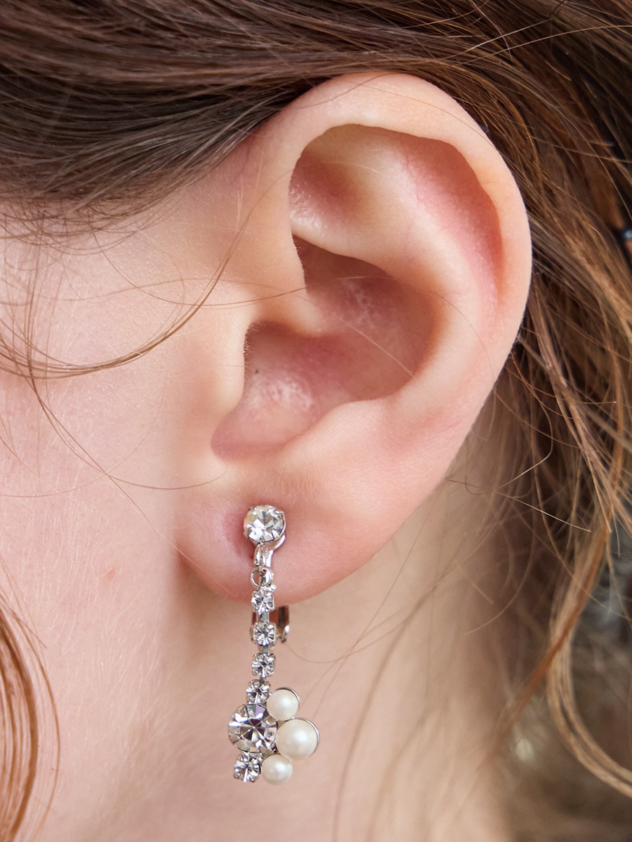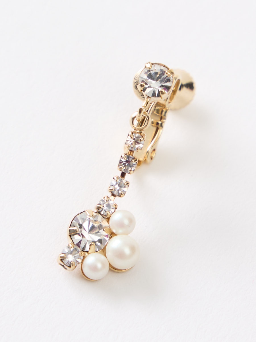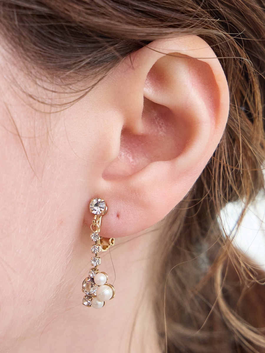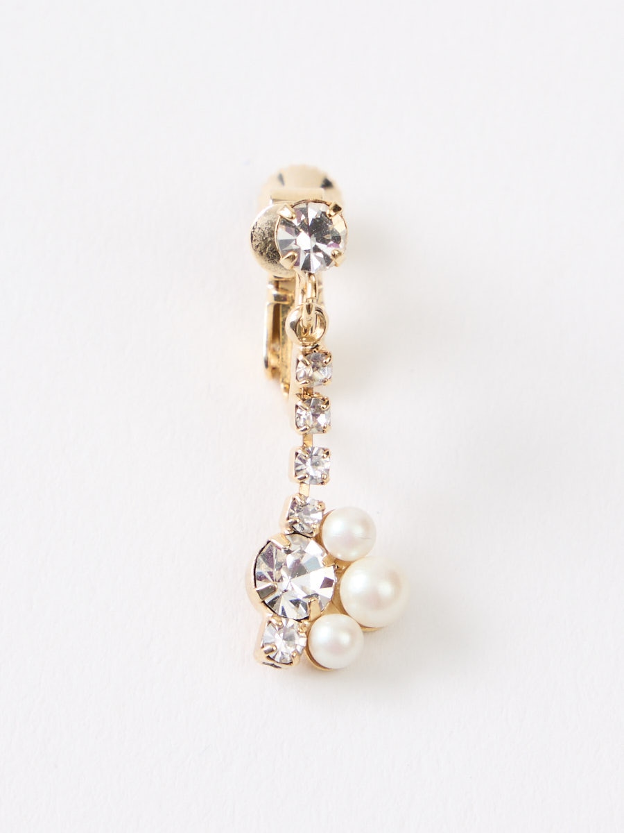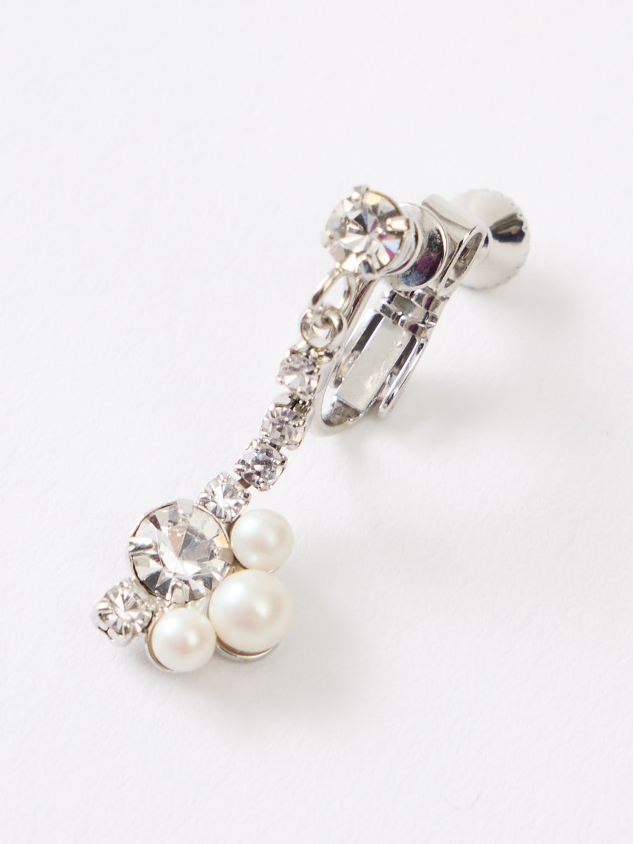 小粒パールとビジュモチーフのイヤリング。