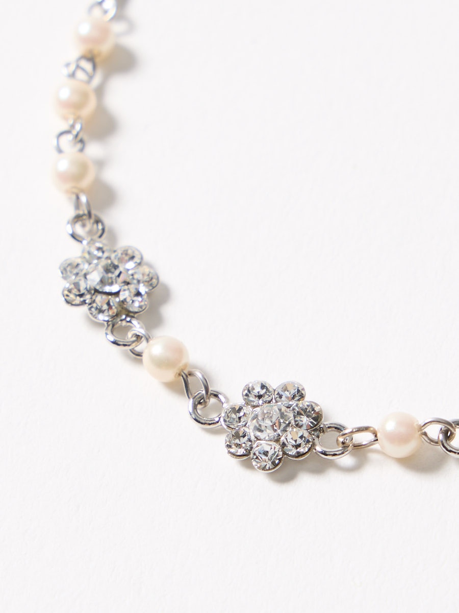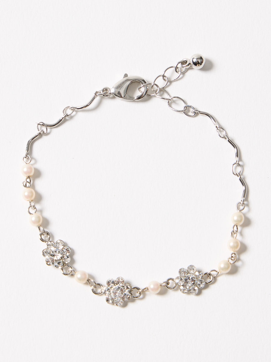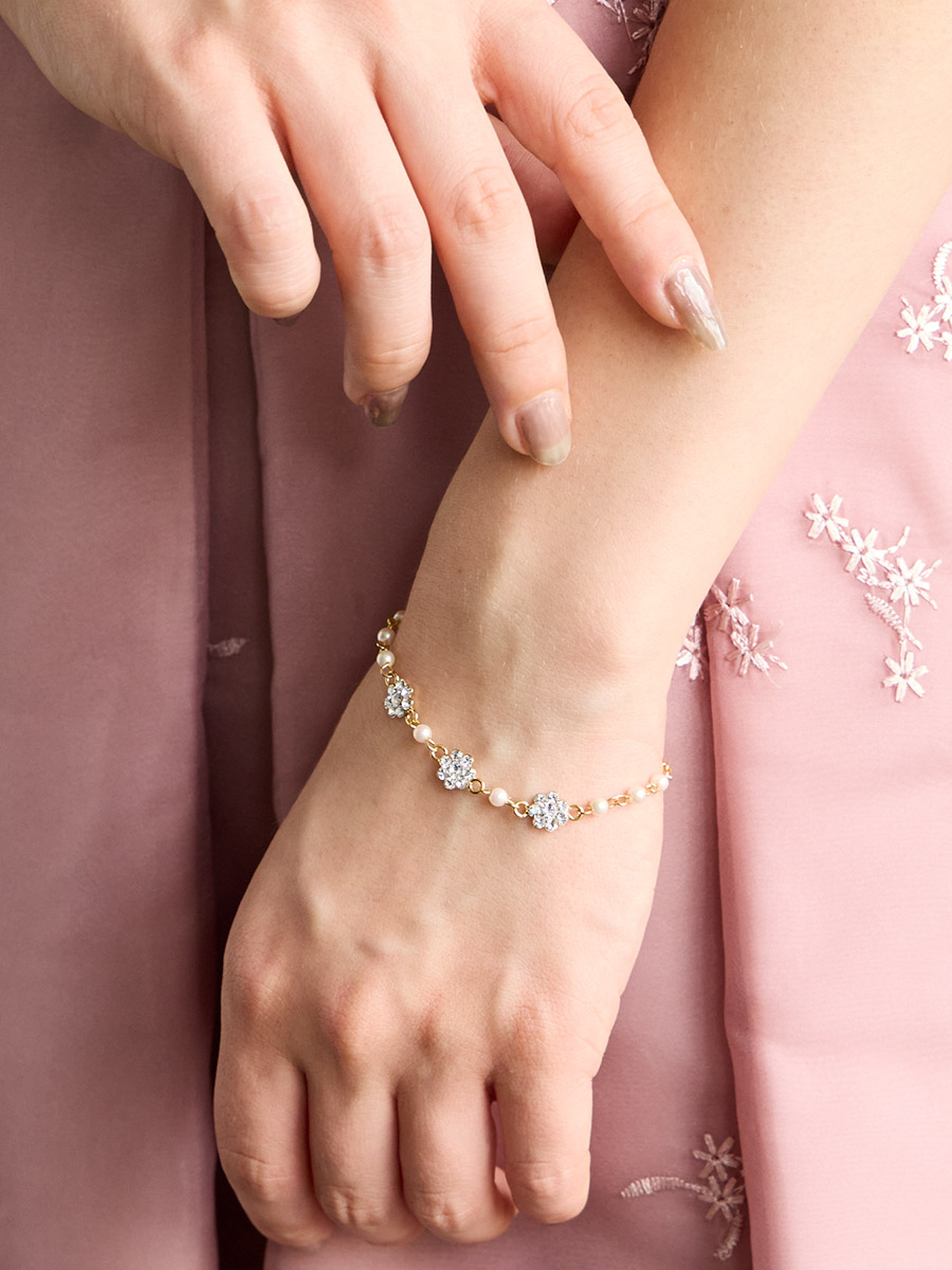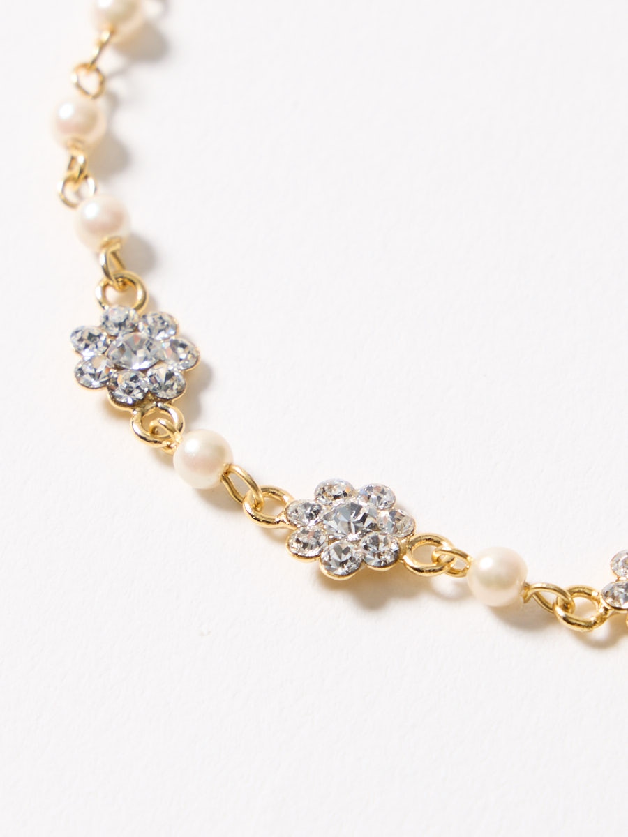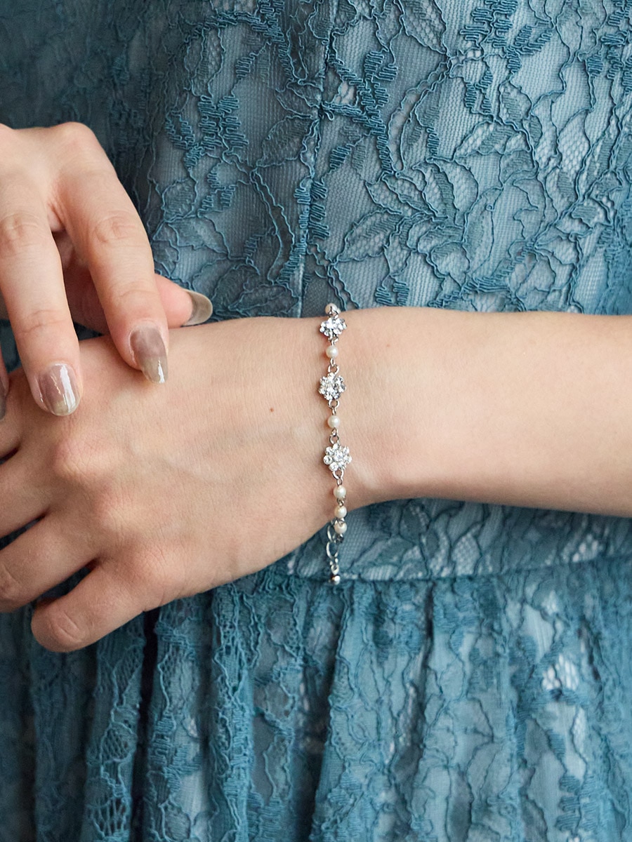 華奢なウェーブチェーンに可愛らしいフラワーモチーフをあしらったブレスレット。