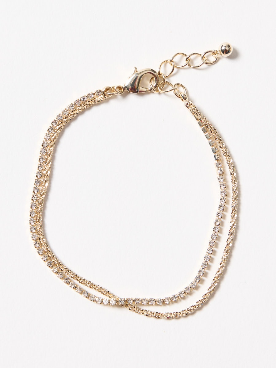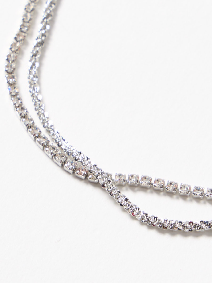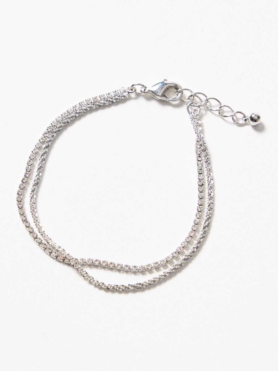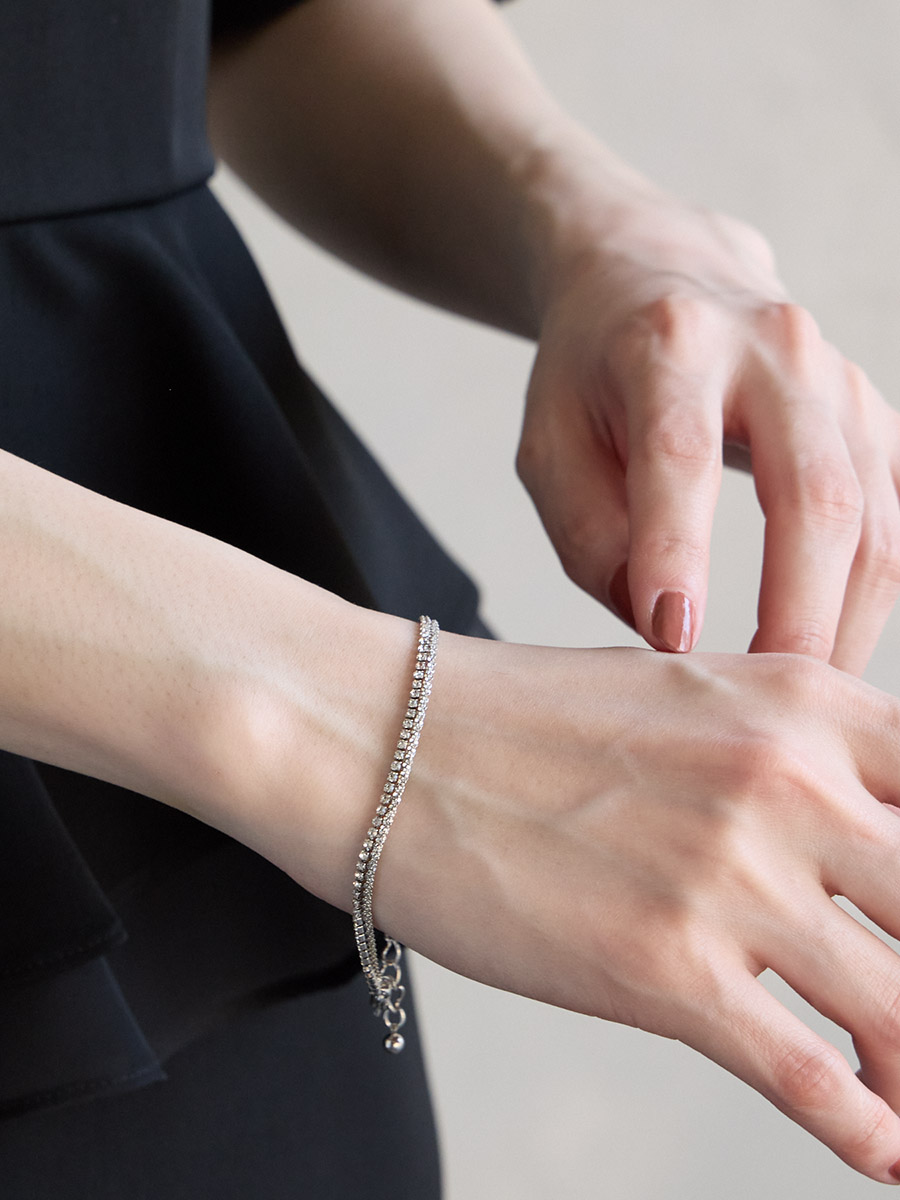 ビジューとチェーンの2連ブレスレットで、手元を華やかに演出してくれます。