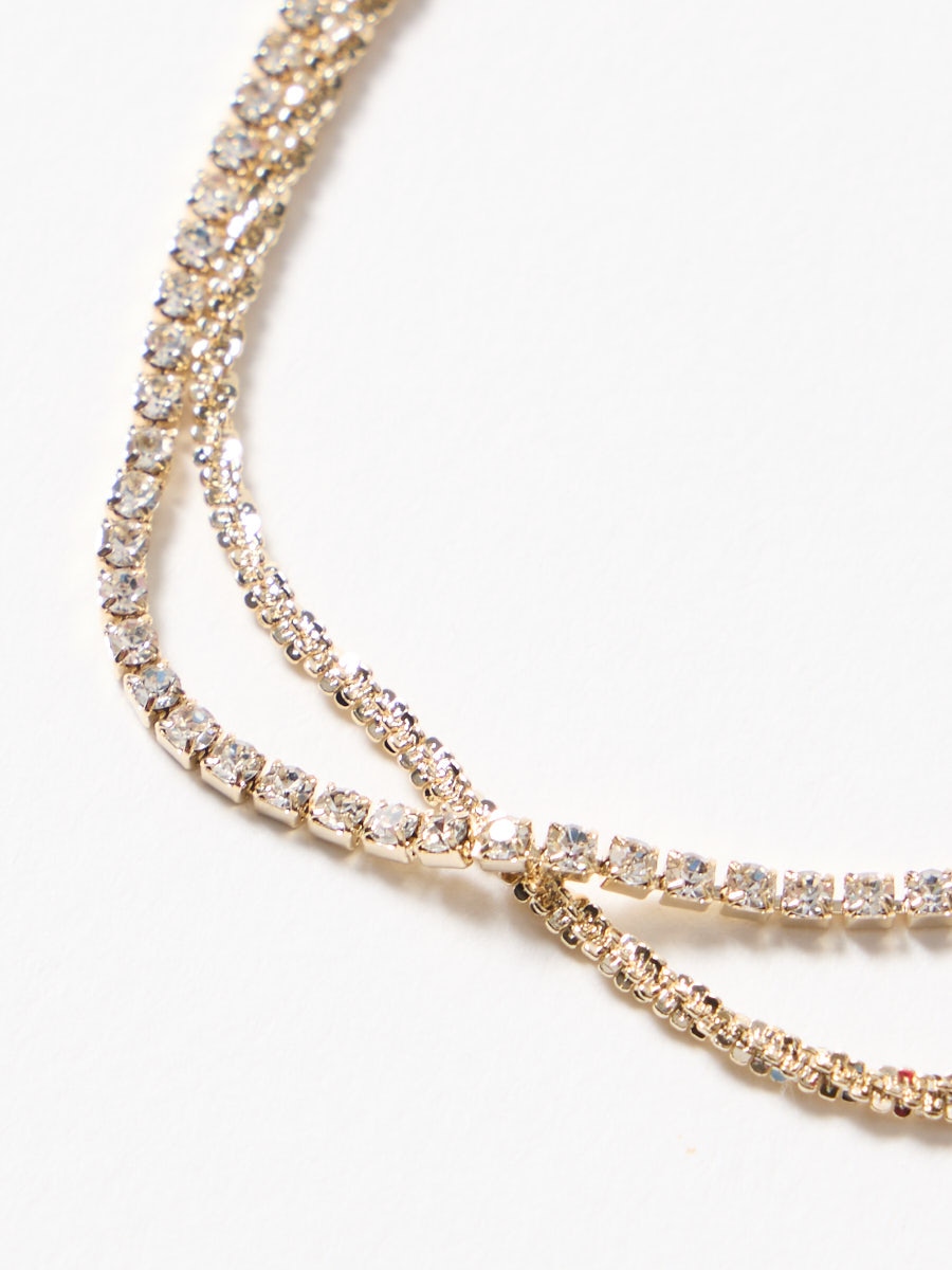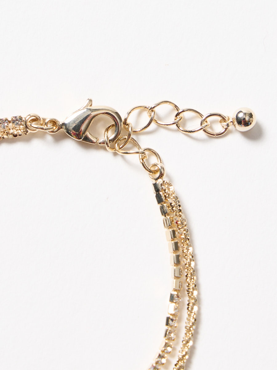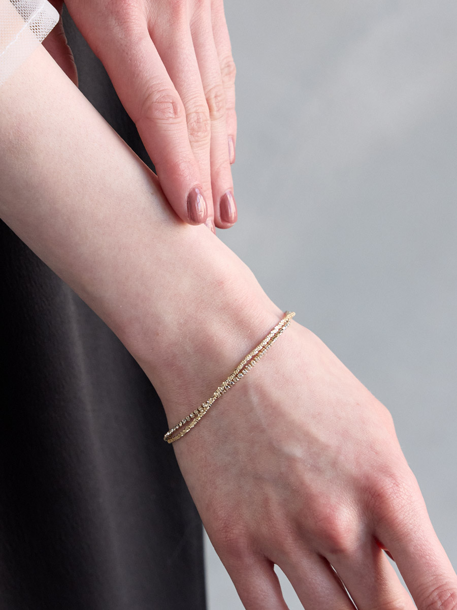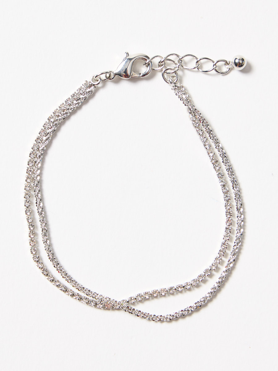 ビジューとチェーンの2連ブレスレットで、手元を華やかに演出してくれます。