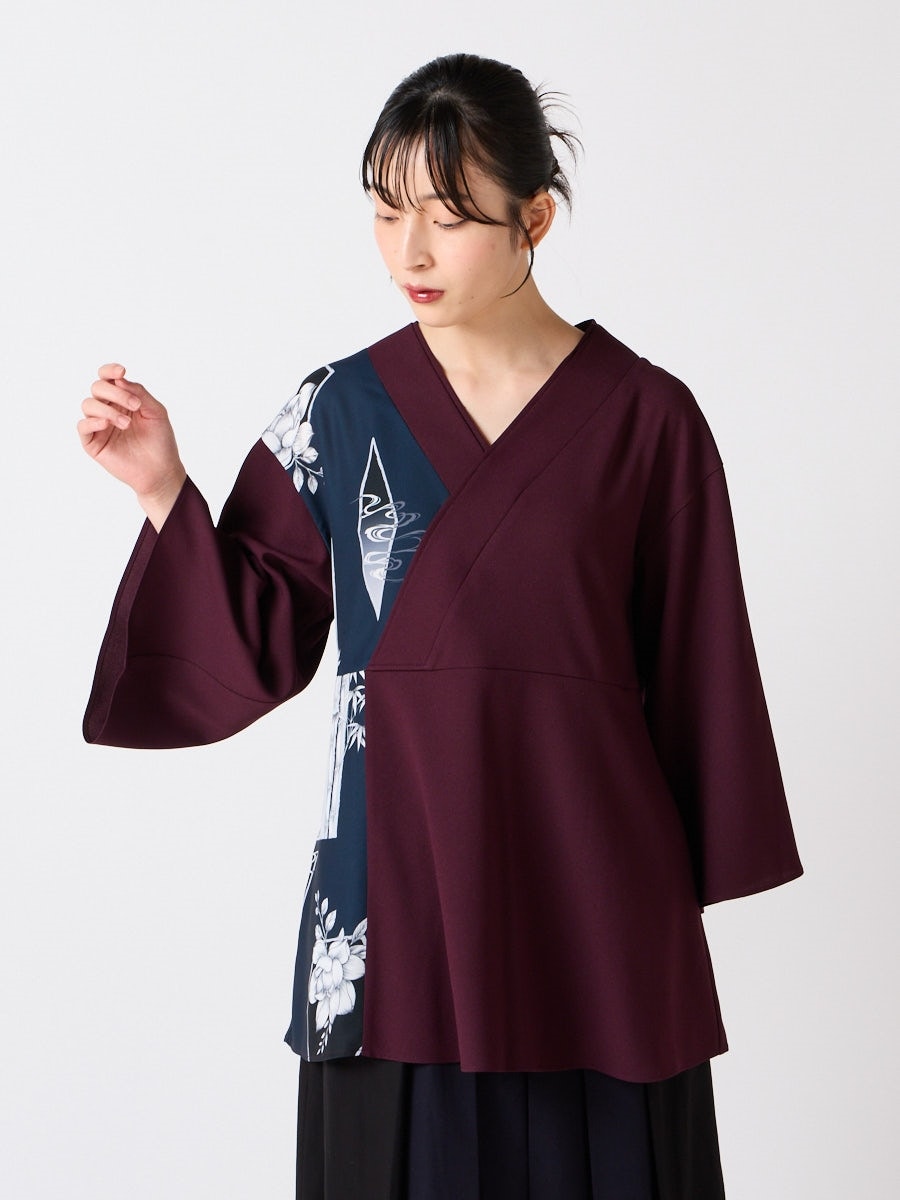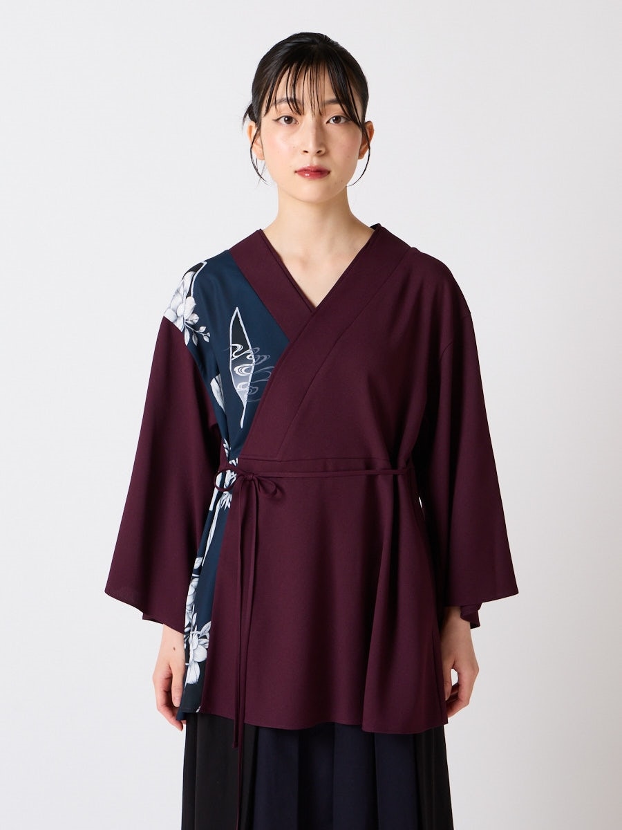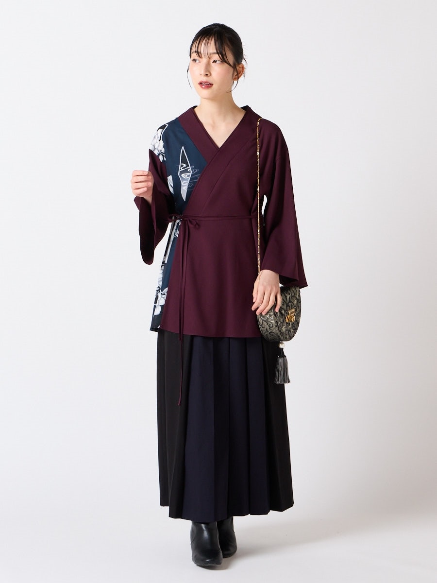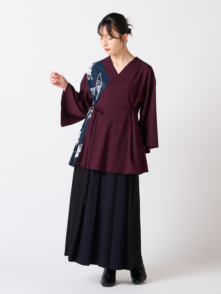 衿がまるで着物のような仕様になっており、一枚で簡単に和の雰囲気に。