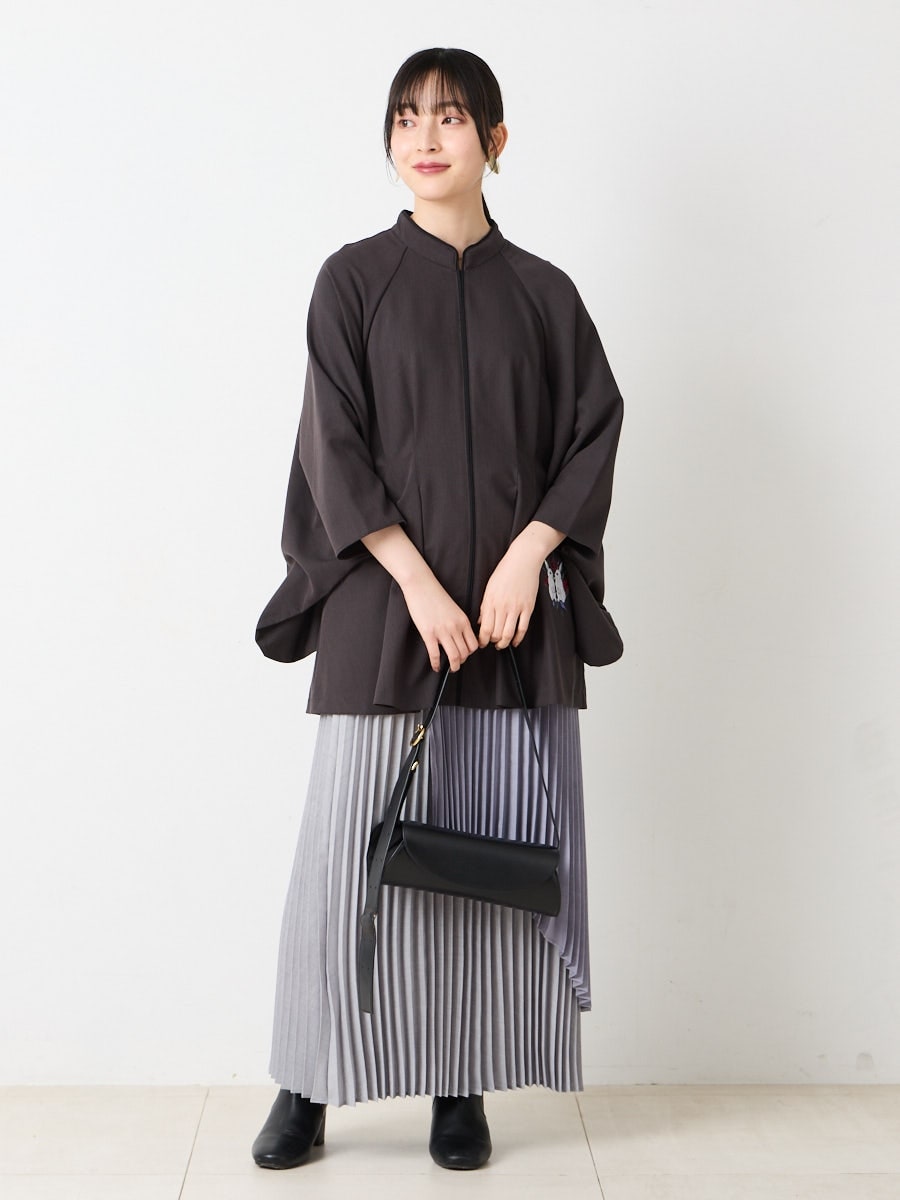 スタンドカラーはほどよい品格を添え、冬の装いにも取り入れやすい佇まいです。