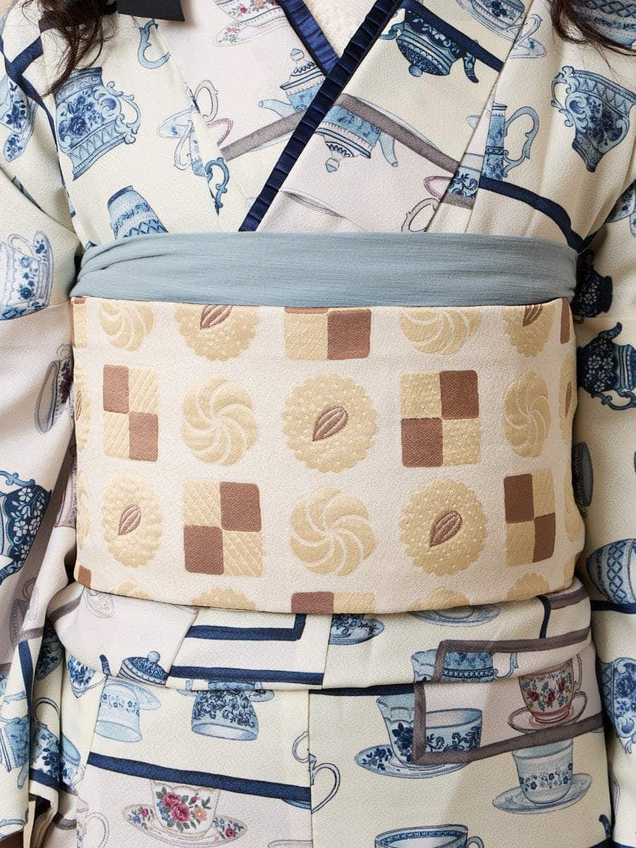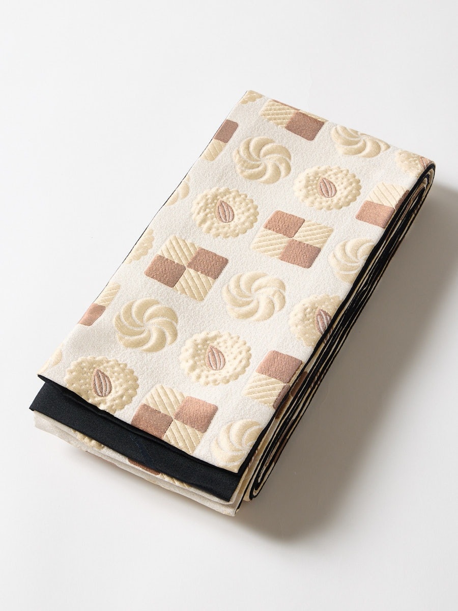 ふんわりとしたふくれ織で、クッキーのような優しい凹凸感を表現した半巾帯。