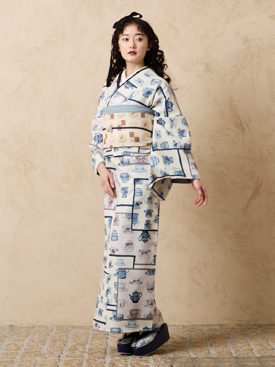 ティーカップ柄は、異国の物語を紡ぐように静かに並びます。